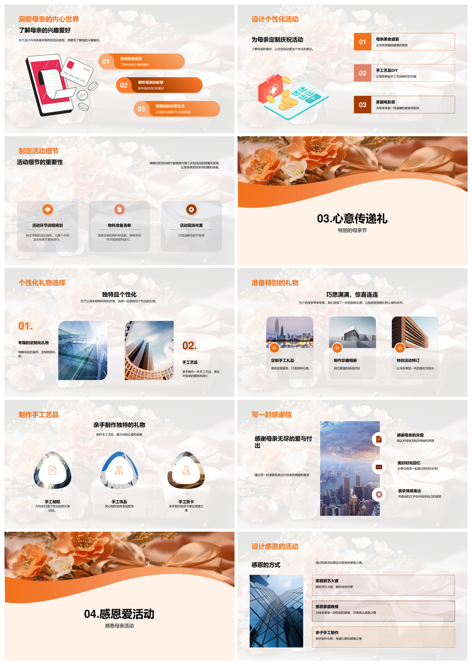 母亲节传统花束与个性礼物庆祝新意PPT模板