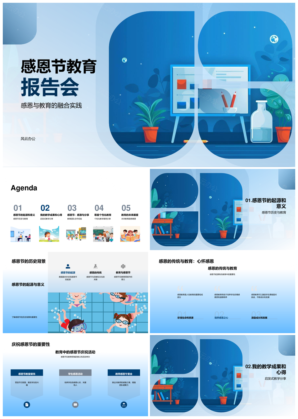 2025感恩教育成果启学生成长未来趋势团队协作个性化教学PPT模板推荐