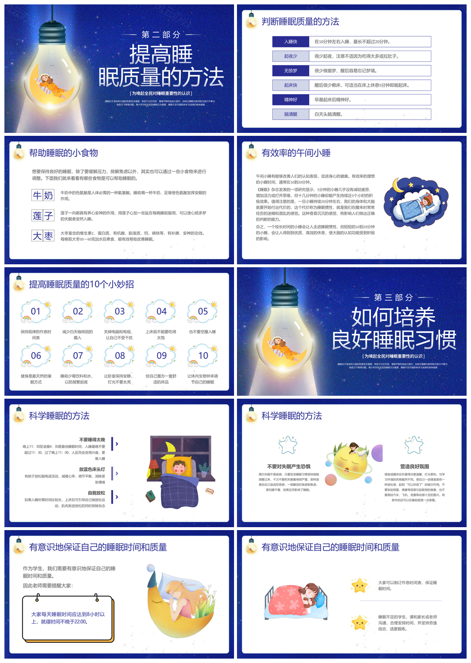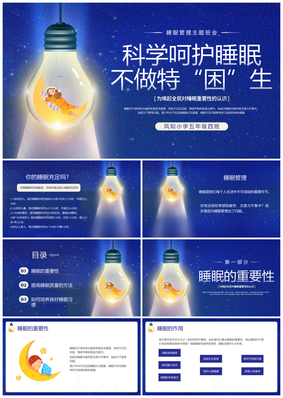 风云办公提供的中小学科学睡眠健康管理班会插画PPT模板,下载格式为pptx,一共18页,作品中文字及图均可以修改和编辑,图片更改请在作品中右键图片并更换,文字修改请直接点击文字进行修改。