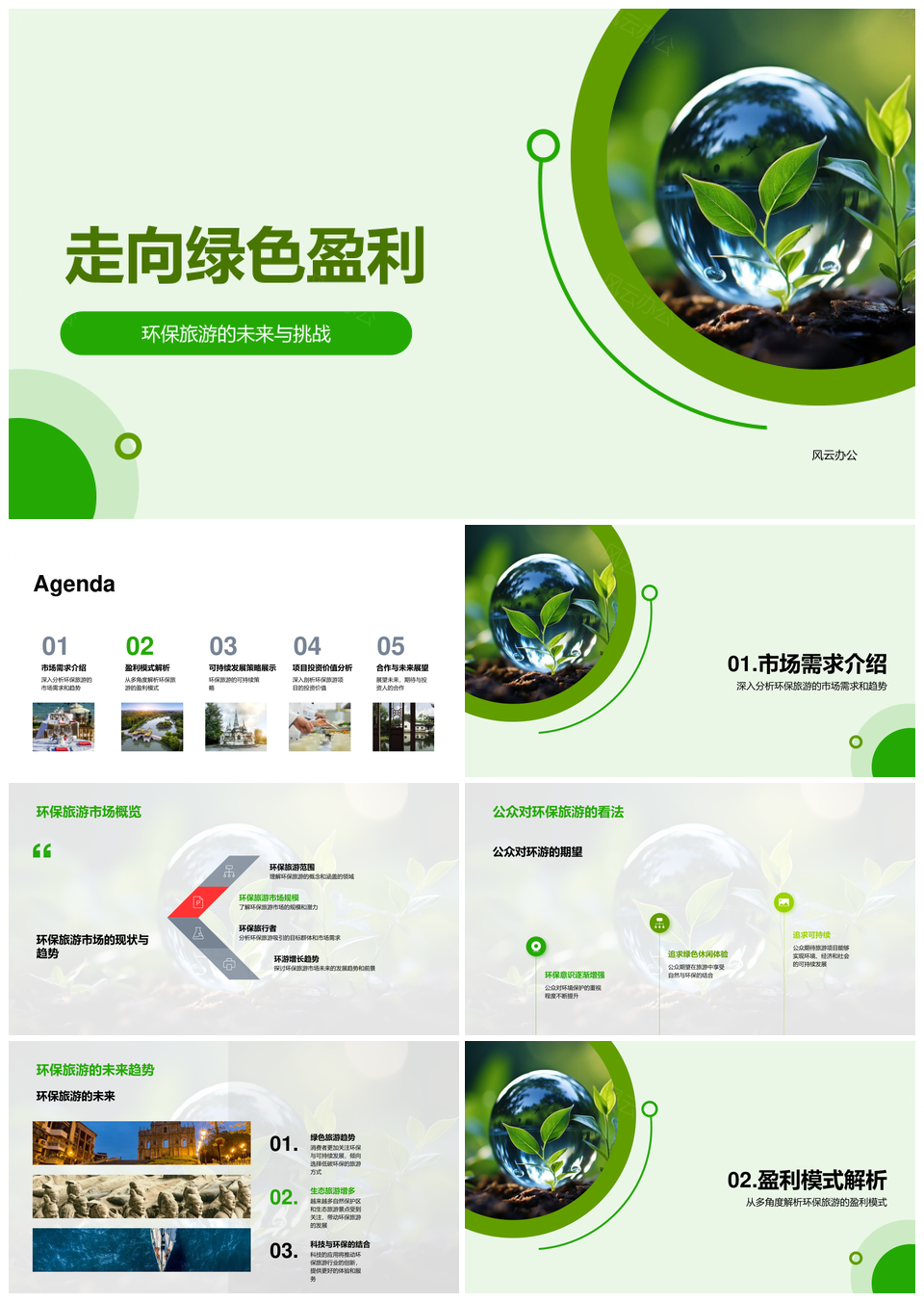 绿色旅游盈利模式驱动可持续投资教育增值PPT模板