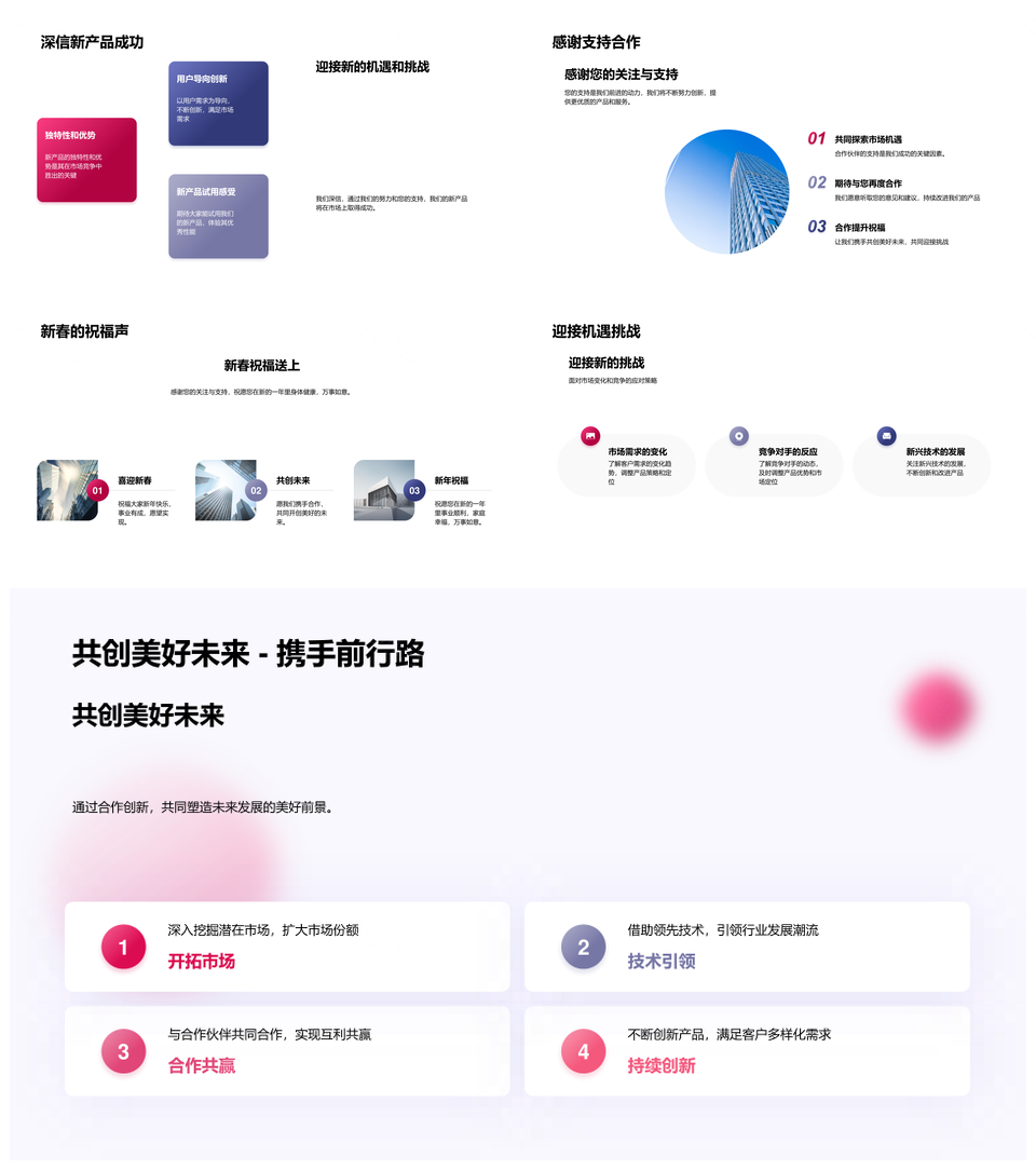 风云办公提供的新春新品创新驱动樱华竞放PPT模板,下载格式为pptx,一共33页,作品中文字及图均可以修改和编辑,图片更改请在作品中右键图片并更换,文字修改请直接点击文字进行修改。