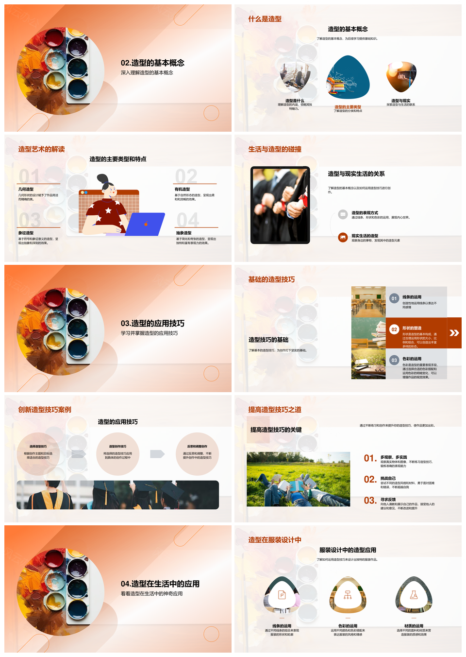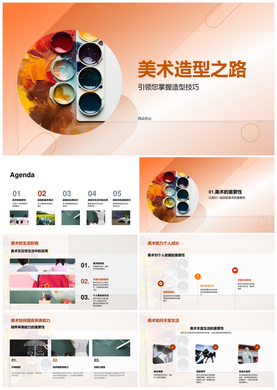 风云办公提供的美术造型发展融入服饰家居生活PPT模板,下载格式为pptx,一共24页,作品中文字及图均可以修改和编辑,图片更改请在作品中右键图片并更换,文字修改请直接点击文字进行修改。