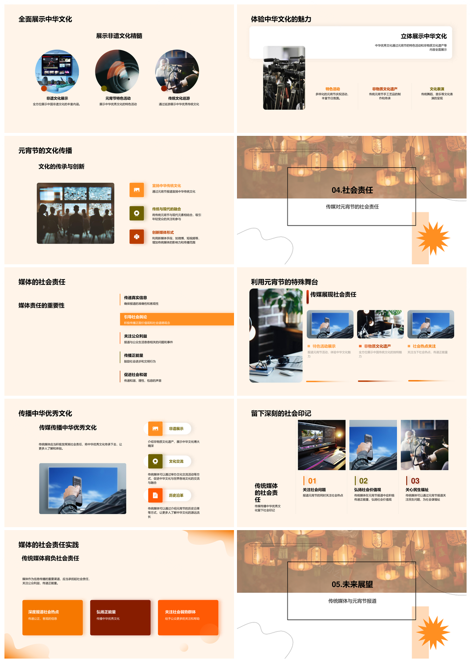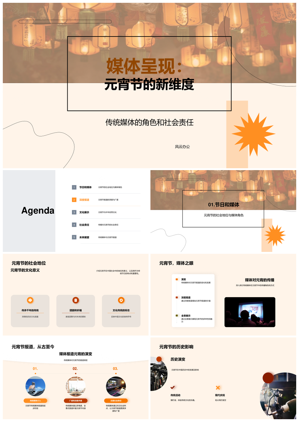 风云办公提供的传统媒体元宵非遗社会责任全景呈现PPT模板,下载格式为pptx,一共33页,作品中文字及图均可以修改和编辑,图片更改请在作品中右键图片并更换,文字修改请直接点击文字进行修改。