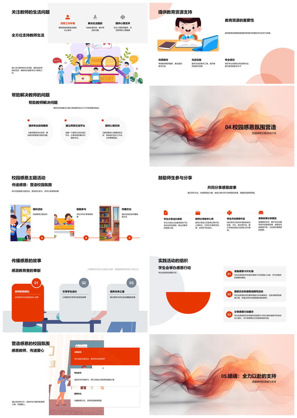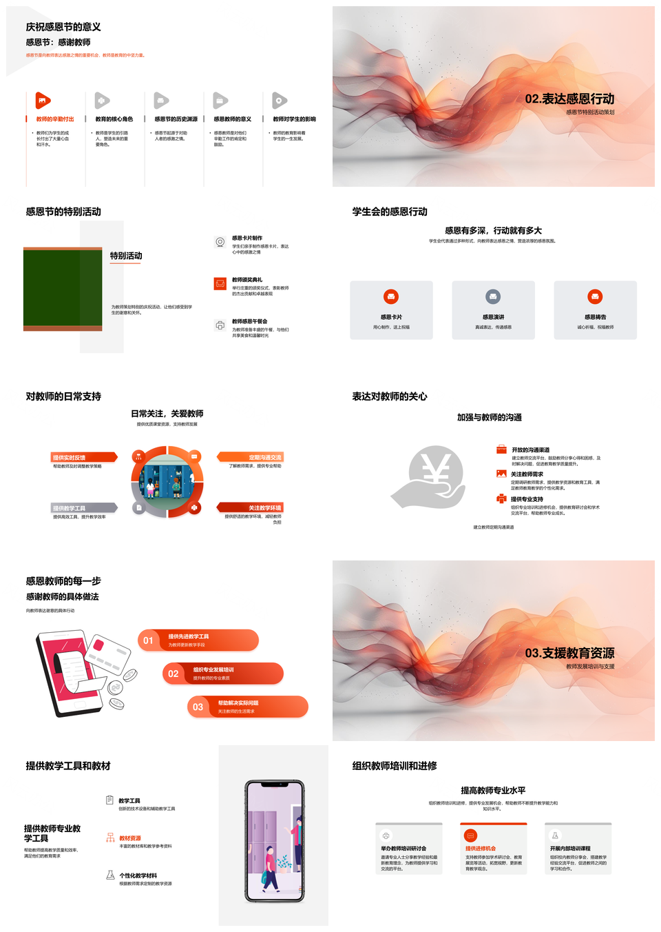 这是一张感恩节学校敬师教育特别活动致谢教师角色文化PPT模板,包含感恩节、学校、敬师教育、特别活动、致谢、教师、角色、文化等主题内容,也可用作感恩节学校敬师教育、学校敬师教育特别活动、敬师教育特别活动致谢、教育特别活动致谢教师、特别活动致谢教师角色、致谢教师角色文化、感恩节敬师教育特别活动、感恩节教育特别活动致谢、感恩节特别活动致谢教师、学校特别活动致谢文化、敬师教育教师角色文化、感恩节学校致谢教师角色、学校敬师教师角色文化、敬师特别活动致谢文化、教育致谢教师角色文化等PPT场景使用。 风云办公提供的感恩节学校敬师教育特别活动致谢教师角色文化PPT模板,下载格式为pptx,一共33页,作品中文字及图均可以修改和编辑,图片更改请在作品中右键图片并更换,文字修改请直接点击文字进行修改。