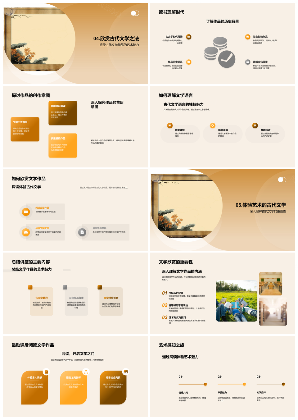这是一张古代文学流派艺术魅力与社会生活探秘PPT模板,包含古代文学、流派、艺术魅力、社会生活、探秘等主题内容,也可用作古代文学流派艺术魅力、文学流派艺术魅力社会生活、艺术魅力社会生活探秘、古代文学流派艺术、文学流派艺术社会生活、流派艺术魅力社会生活、社会生活探秘古代文学、古代文学艺术魅力探秘、流派艺术社会生活探秘、文学社会生活探秘古代、古代文学流派探秘、文学艺术魅力社会生活、流派艺术魅力探秘、艺术魅力社会生活探秘、古代文学流派社会生活等PPT场景使用。