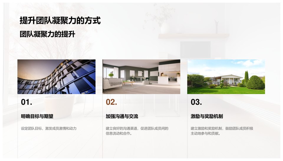 这是一张家居销售策略团队新客竞争业绩目标分析PPT模板,包含家居、销售策略、团队、新客、竞争、业绩、目标、分析等主题内容,也可用作家居销售策略团队新客、销售策略团队新客竞争、团队新客竞争业绩目标、新客竞争业绩目标分析、家居销售策略团队、销售策略团队新客、团队新客竞争、新客竞争业绩目标、竞争业绩目标分析、家居销售策略、销售策略团队、团队新客、新客竞争、竞争业绩目标、业绩目标分析等PPT场景使用。 风云办公提供的家居销售策略团队新客竞争业绩目标分析PPT模板,下载格式为pptx,一共29页,作品中文字及图均可以修改和编辑,图片更改请在作品中右键图片并更换,文字修改请直接点击文字进行修改。