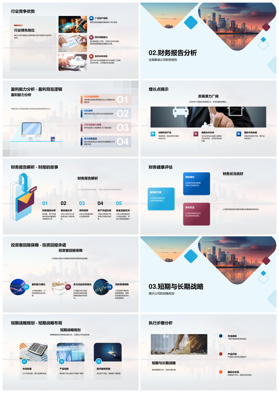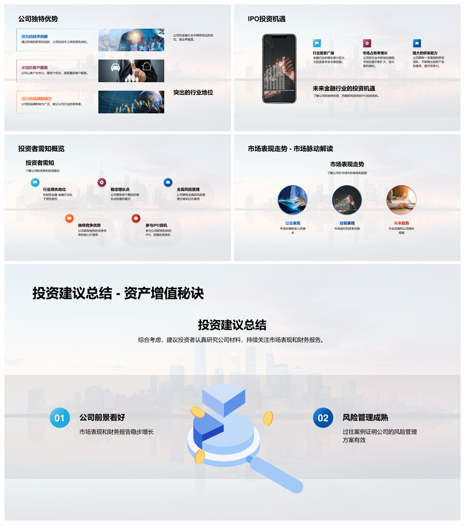 这是一张金融精准导航企业IPO路演财报盈利风险摩天PPT模板,包含金融、精准导航、企业、IPO、路演、财报、盈利、风险、摩天等主题内容,也可用作金融精准导航企业IPO、精准导航企业IPO路演、导航企业IPO路演财报、企业IPO路演财报盈利、IPO路演财报盈利风险、路演财报盈利风险摩天、金融企业IPO路演财报、导航IPO路演盈利风险、企业财报盈利风险摩天、金融IPO路演盈利风险、精准企业财报盈利风险、导航路演财报盈利风险、IPO财报盈利摩天风险、金融精准企业路演财报、企业路演盈利风险摩天等PPT场景使用。 风云办公提供的金融精准导航企业IPO路演财报盈利风险摩天PPT模板,下载格式为pptx,一共33页,作品中文字及图均可以修改和编辑,图片更改请在作品中右键图片并更换,文字修改请直接点击文字进行修改。