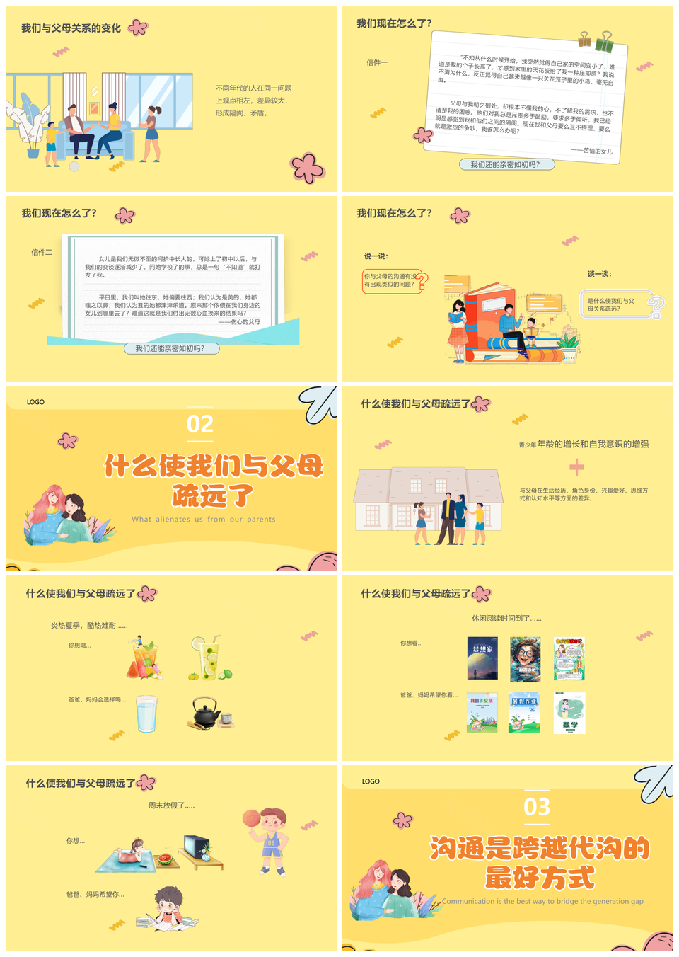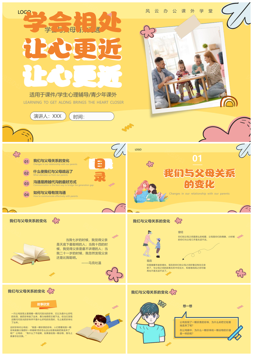 2025淡黄插画亲子高效沟通学生心理教育PPT模板