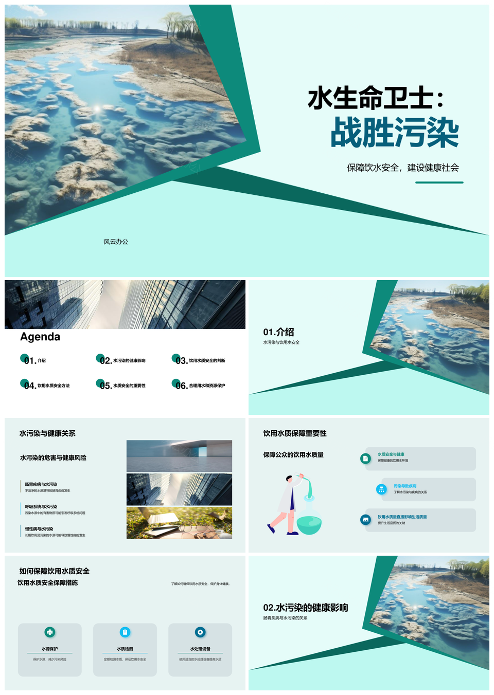 风云办公提供的水质检测护饮水安全克污染致病风险PPT模板,下载格式为pptx,一共26页,作品中文字及图均可以修改和编辑,图片更改请在作品中右键图片并更换,文字修改请直接点击文字进行修改。