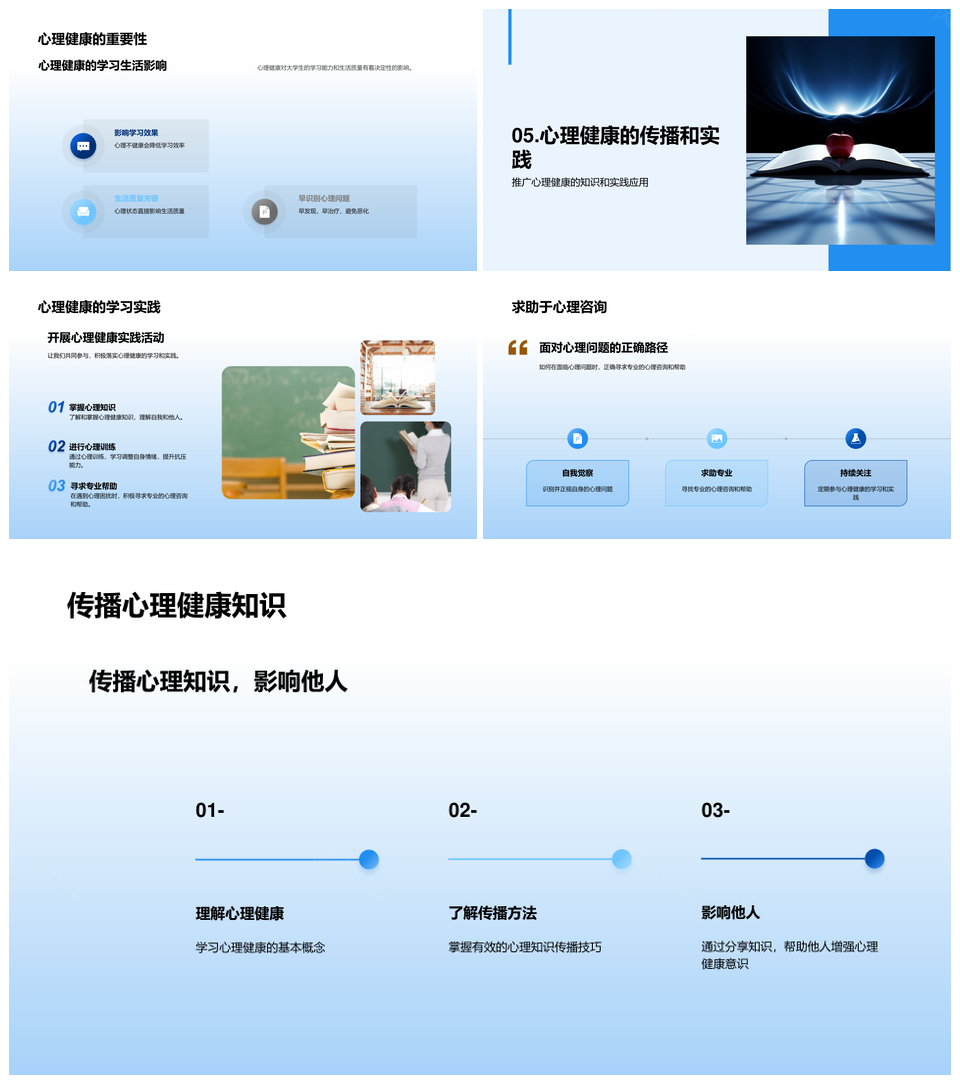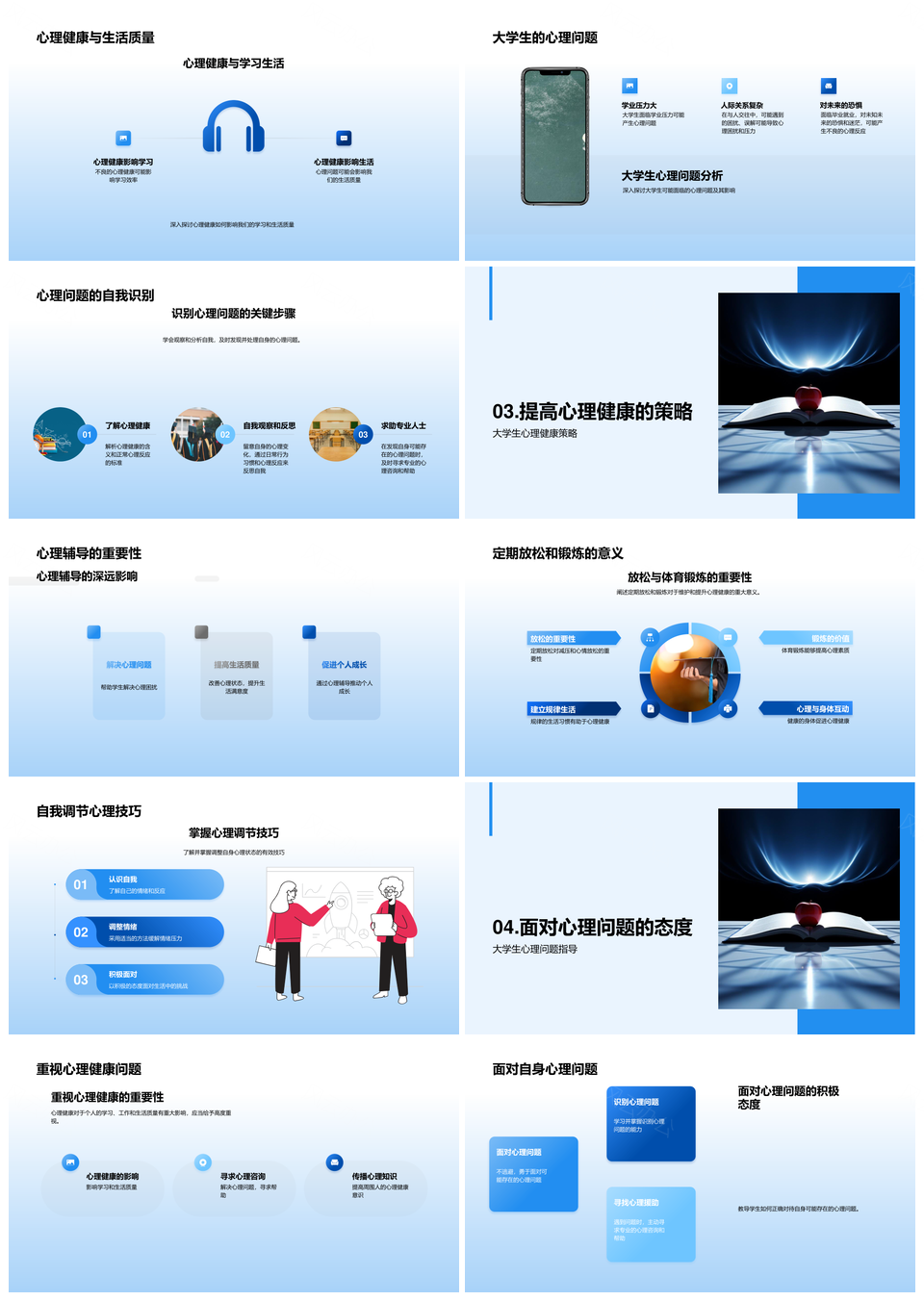 风云办公提供的大学生心理健康挑战应对与生活提升PPT模板,下载格式为pptx,一共23页,作品中文字及图均可以修改和编辑,图片更改请在作品中右键图片并更换,文字修改请直接点击文字进行修改。