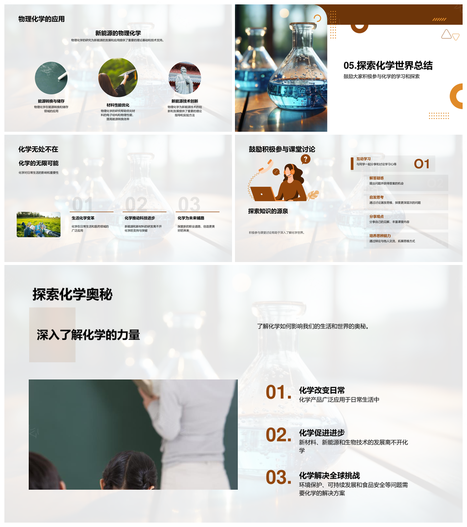 风云办公提供的化学反应应用食药能源化学探究PPT模板,下载格式为pptx,一共23页,作品中文字及图均可以修改和编辑,图片更改请在作品中右键图片并更换,文字修改请直接点击文字进行修改。