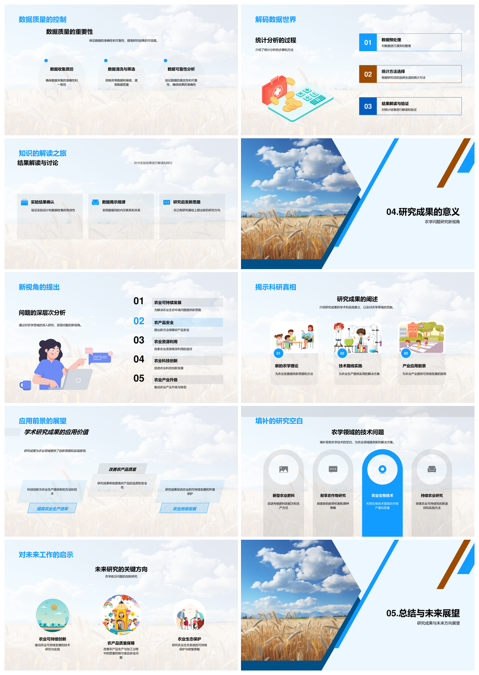 风云办公提供的农学起源理论与麦田实验技术方法答辩PPT模板,下载格式为pptx,一共33页,作品中文字及图均可以修改和编辑,图片更改请在作品中右键图片并更换,文字修改请直接点击文字进行修改。