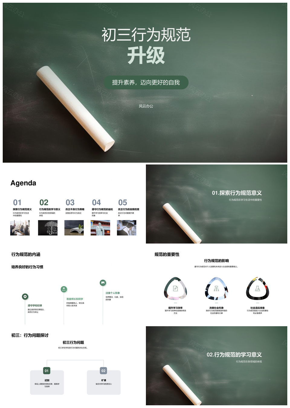 这是一张初三行为规范升级教育活动提升素养习惯PPT模板,包含初三、行为规范、升级、教育活动、提升、素养、习惯等主题内容,也可用作初三行为规范升级教育、行为规范升级教育活动、升级教育活动提升、教育活动提升素养、活动提升素养习惯、初三行为规范升级、行为规范升级教育、升级教育活动、教育活动提升、活动提升素养、初三行为规范、行为规范升级、升级教育、教育活动、活动提升等PPT场景使用。 风云办公提供的初三行为规范升级教育活动提升素养习惯PPT模板,下载格式为pptx,一共27页,作品中文字及图均可以修改和编辑,图片更改请在作品中右键图片并更换,文字修改请直接点击文字进行修改。