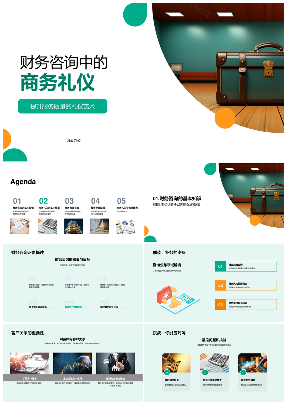 风云办公提供的财务顾问商务礼仪与服务质量PPT模板,下载格式为pptx,一共28页,作品中文字及图均可以修改和编辑,图片更改请在作品中右键图片并更换,文字修改请直接点击文字进行修改。
