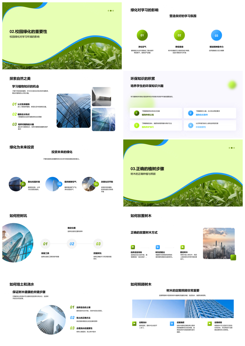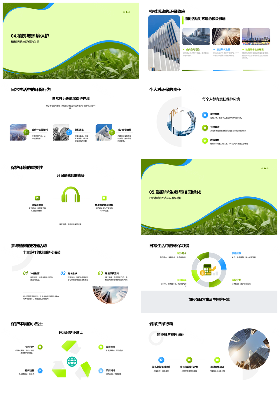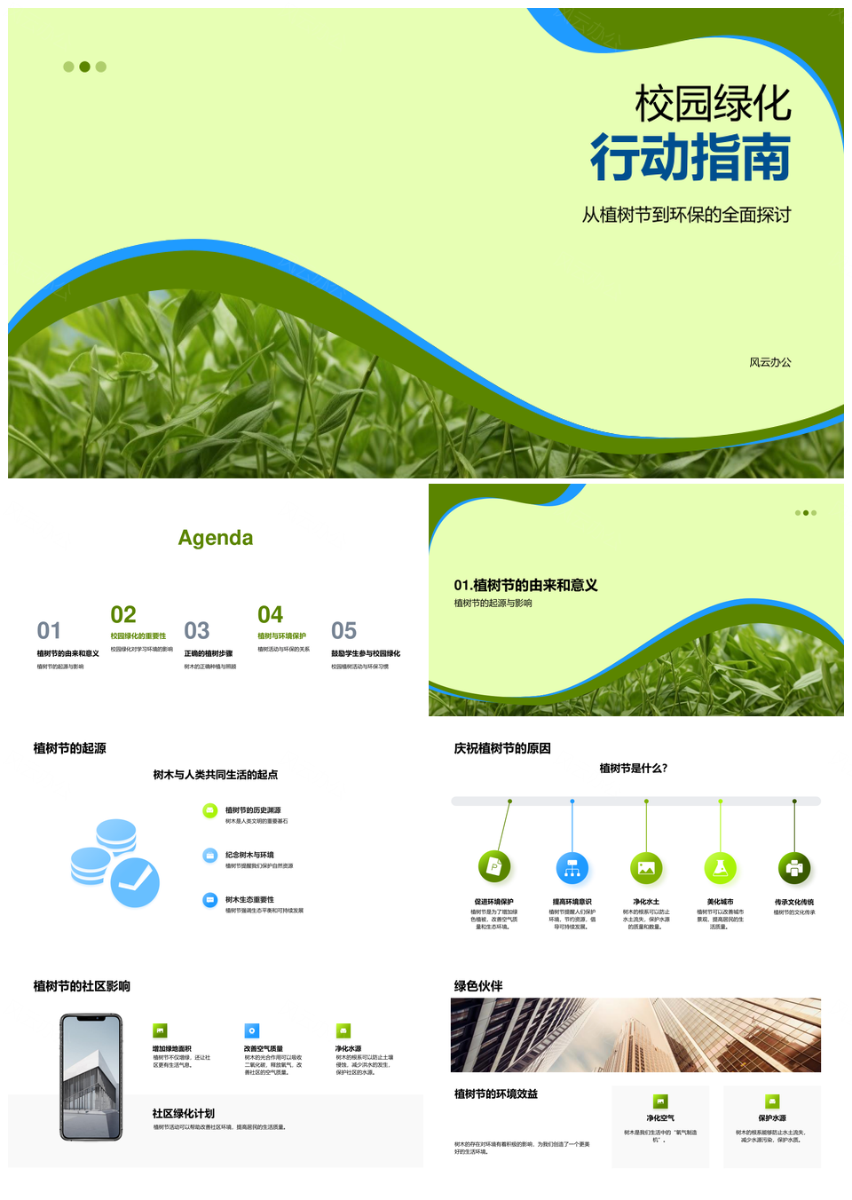 风云办公提供的校园绿化植树节学生环保行动指南PPT模板,下载格式为pptx,一共28页,作品中文字及图均可以修改和编辑,图片更改请在作品中右键图片并更换,文字修改请直接点击文字进行修改。