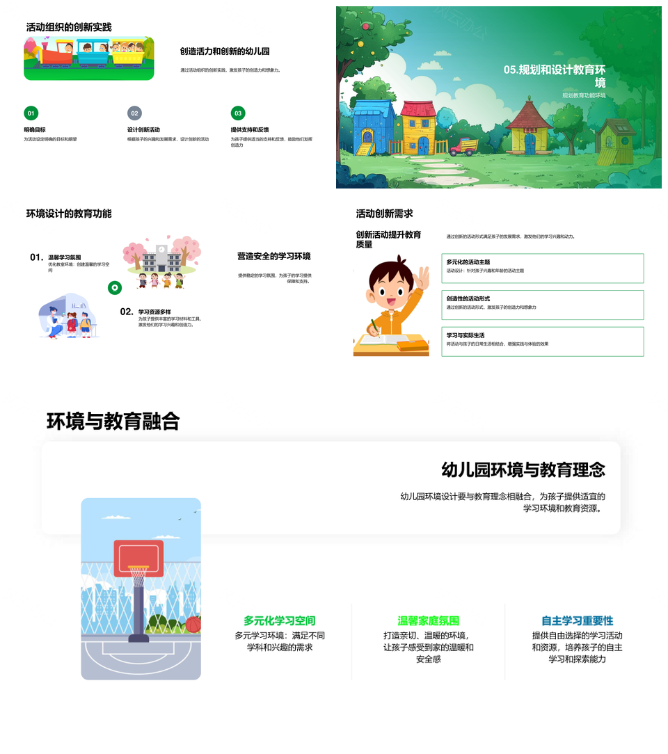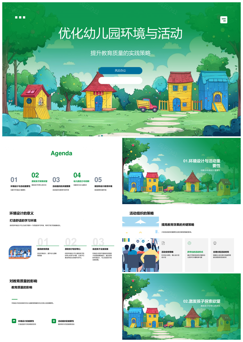 风云办公提供的优化幼教环境活动提升教育质量PPT模板,下载格式为pptx,一共23页,作品中文字及图均可以修改和编辑,图片更改请在作品中右键图片并更换,文字修改请直接点击文字进行修改。