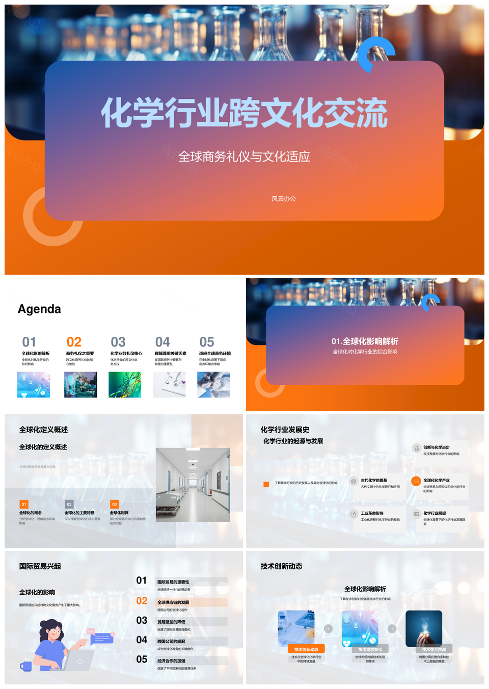 风云办公提供的化学全球化跨文化商务技术多元创新PPT模板,下载格式为pptx,一共29页,作品中文字及图均可以修改和编辑,图片更改请在作品中右键图片并更换,文字修改请直接点击文字进行修改。