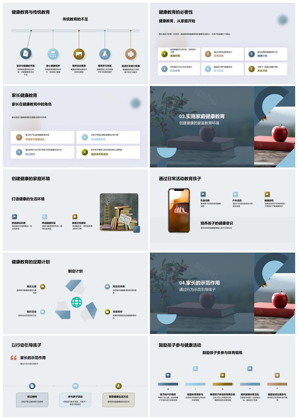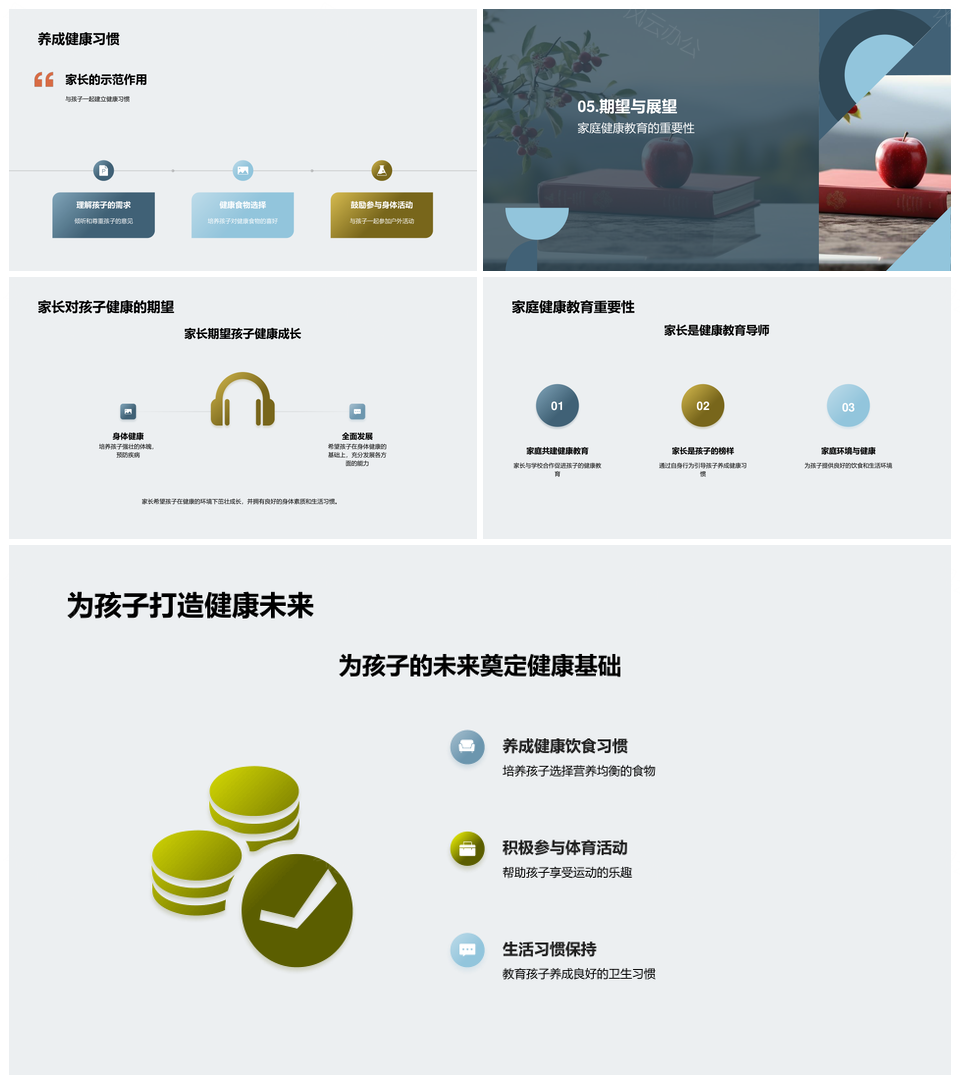 家庭教育家长引导孩子健康苹果习惯学习发展PPT模板推荐
