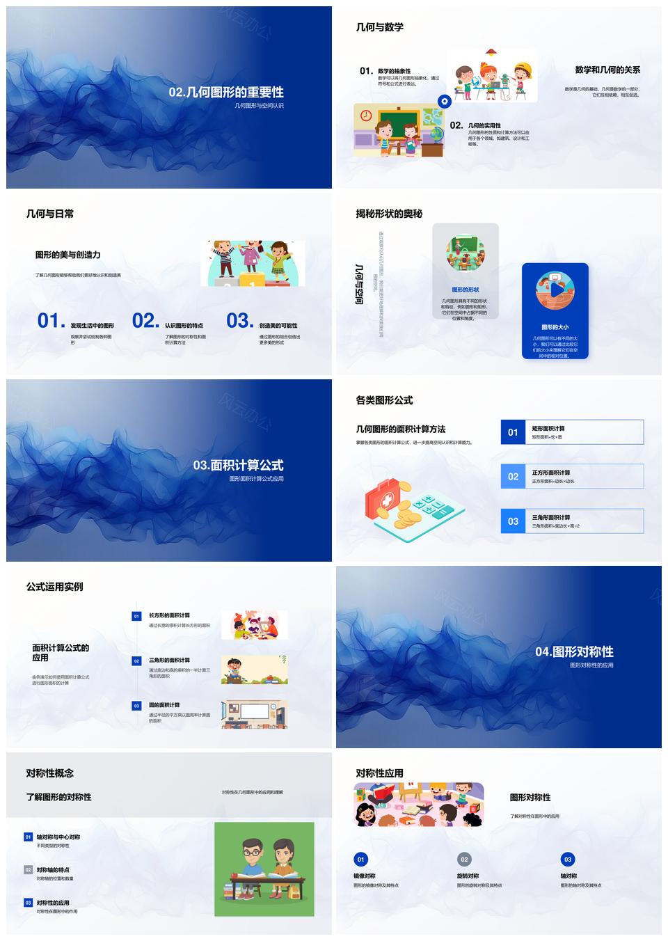 小学几何图形空间认知对称性面积计算教学PPT模板推荐