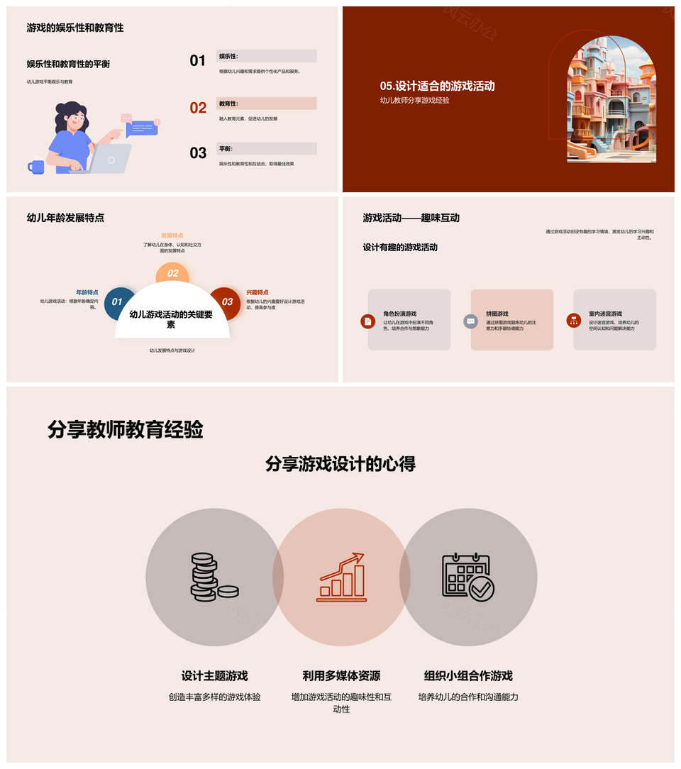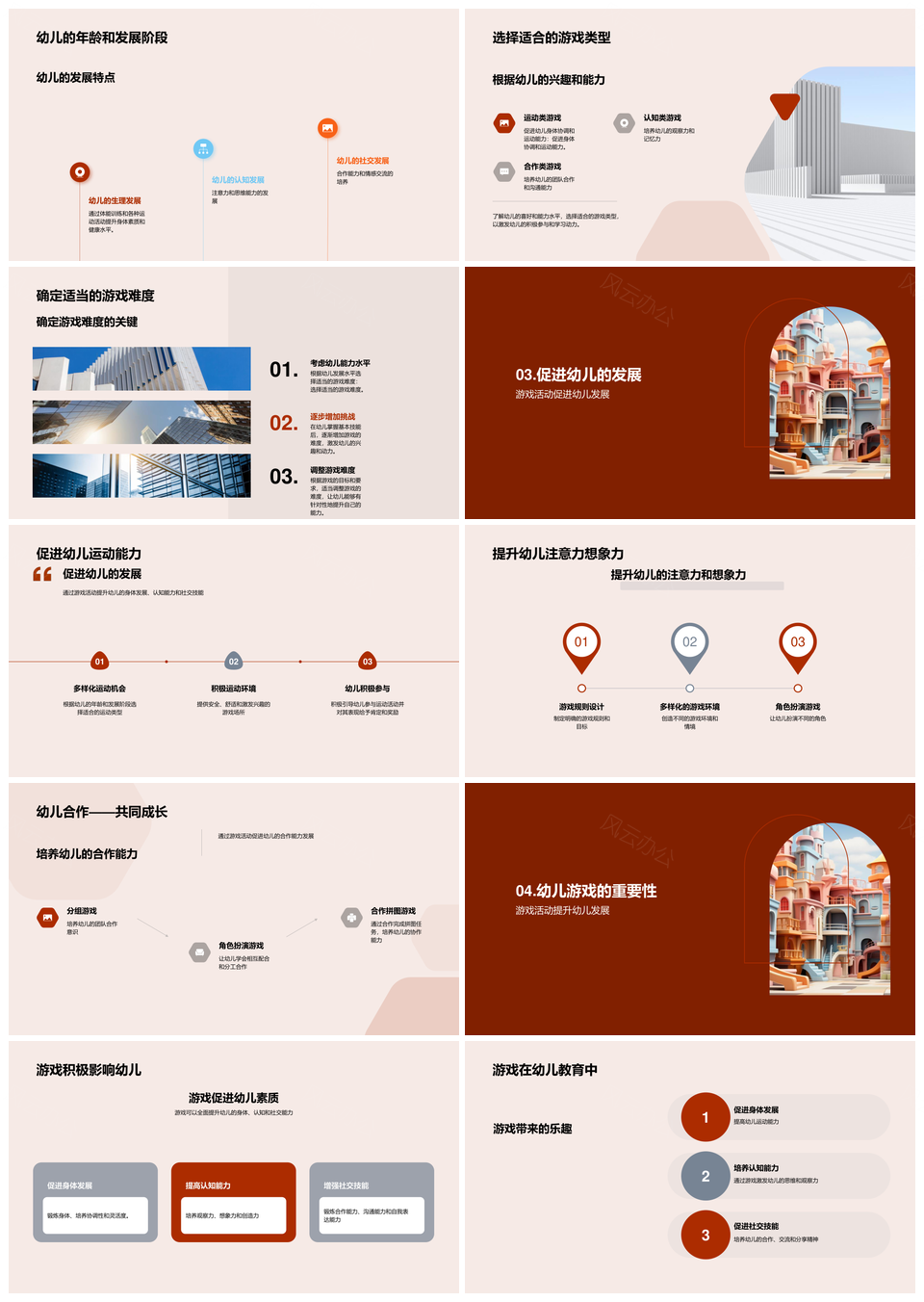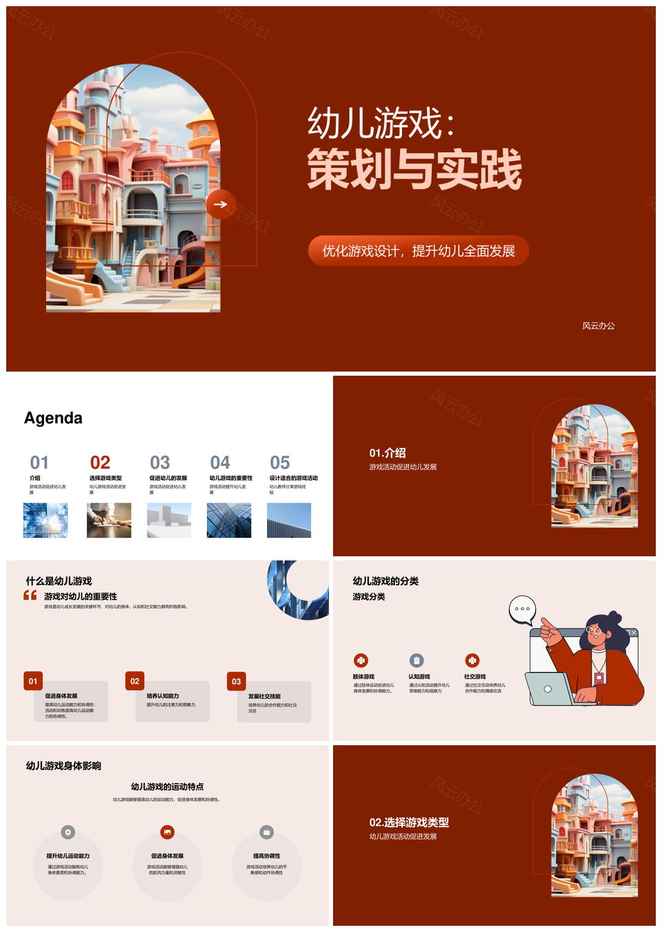 风云办公提供的幼儿分龄游戏设计促身体认知社交发展PPT模板,下载格式为pptx,一共23页,作品中文字及图均可以修改和编辑,图片更改请在作品中右键图片并更换,文字修改请直接点击文字进行修改。