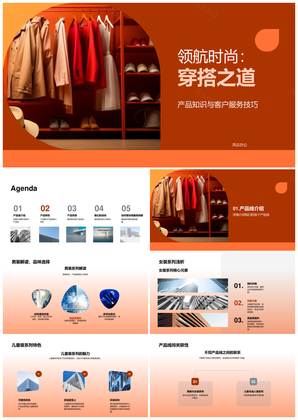 风云办公提供的领航时尚穿搭全系列产品服务联动之道PPT模板,下载格式为pptx,一共24页,作品中文字及图均可以修改和编辑,图片更改请在作品中右键图片并更换,文字修改请直接点击文字进行修改。