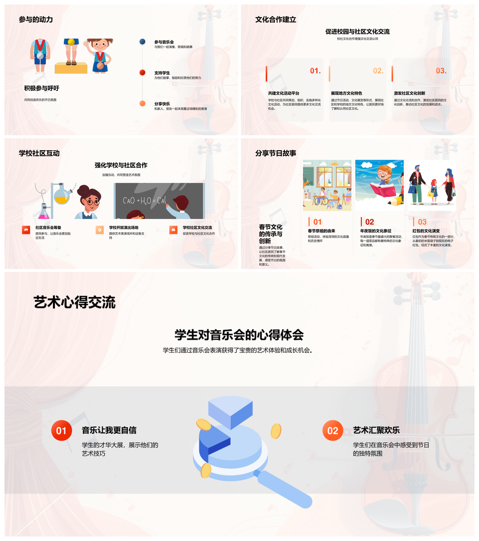 这是一张春节学生传统艺术教育社区音乐会PPT模板,包含春节、学生、传统、艺术、教育、社区、音乐会等主题内容,也可用作春节学生传统艺术、学生传统艺术教育、传统艺术教育社区、艺术教育社区音乐会、春节学生传统、学生传统艺术、传统艺术教育、艺术教育社区、春节学生、学生传统、传统艺术、艺术教育、教育社区、社区音乐会、春节传统等PPT场景使用。
