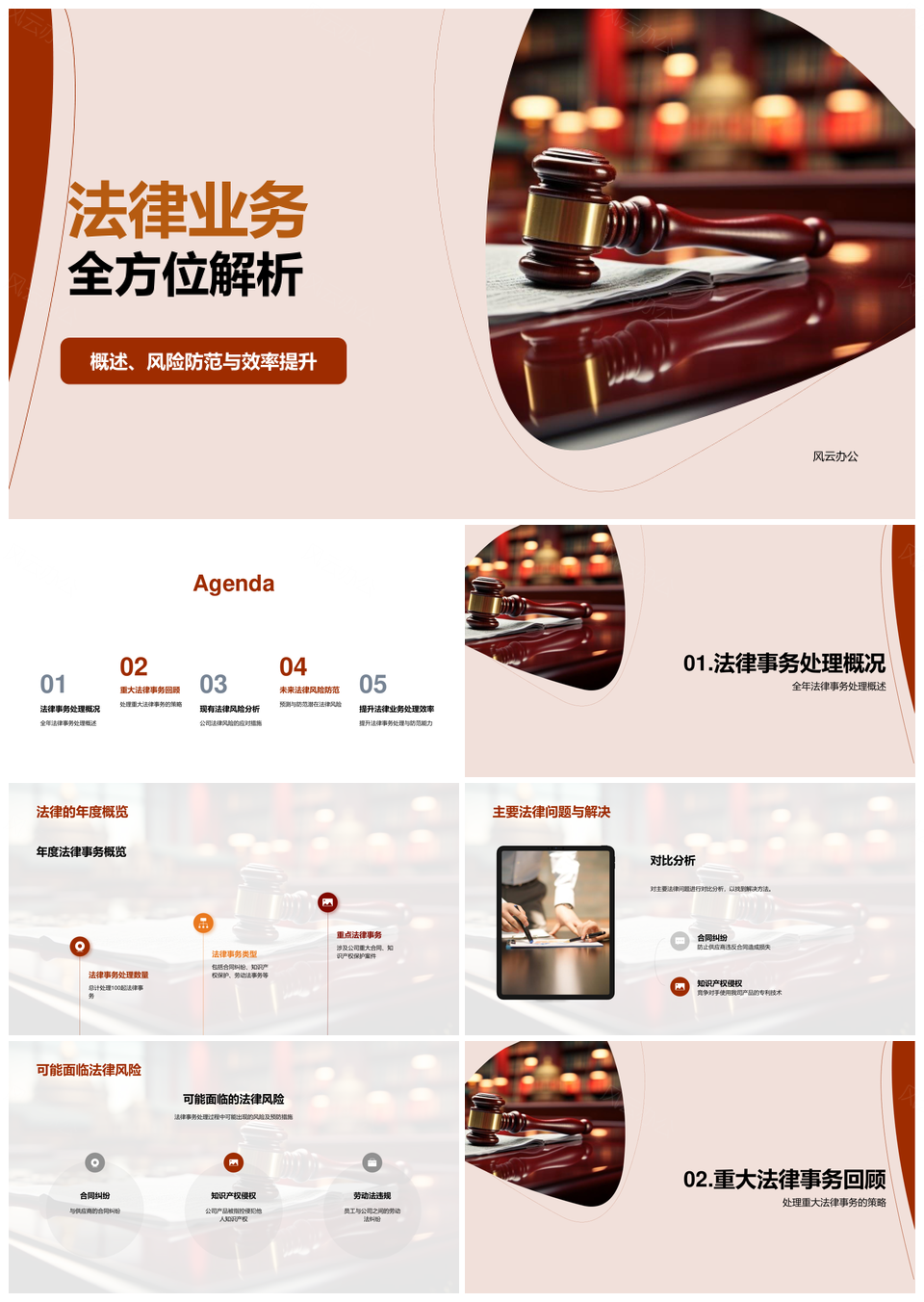 风云办公提供的法律业务风险防范效率提升实务解析PPT模板,下载格式为pptx,一共23页,作品中文字及图均可以修改和编辑,图片更改请在作品中右键图片并更换,文字修改请直接点击文字进行修改。