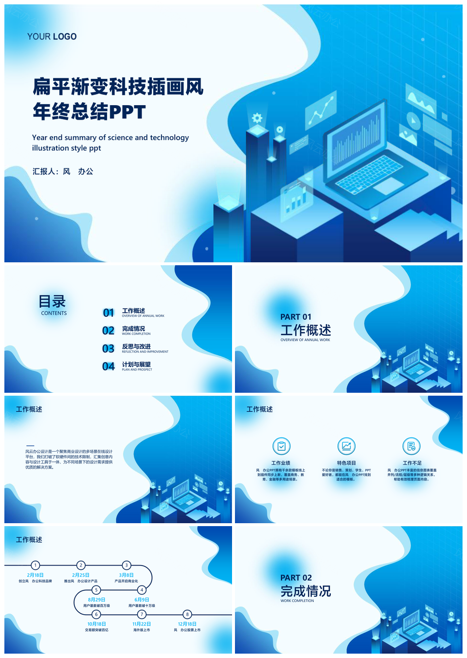 风云办公提供的2D5插画风年终总结复盘汇报模板,下载格式为pptx,一共20页,作品中文字及图均可以修改和编辑,图片更改请在作品中右键图片并更换,文字修改请直接点击文字进行修改。