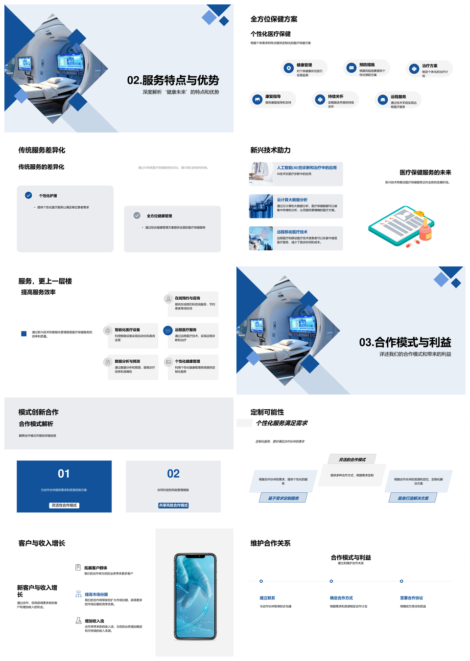 风云办公提供的未来医疗合作趋势与健康管理新模式PPT模板,下载格式为pptx,一共28页,作品中文字及图均可以修改和编辑,图片更改请在作品中右键图片并更换,文字修改请直接点击文字进行修改。