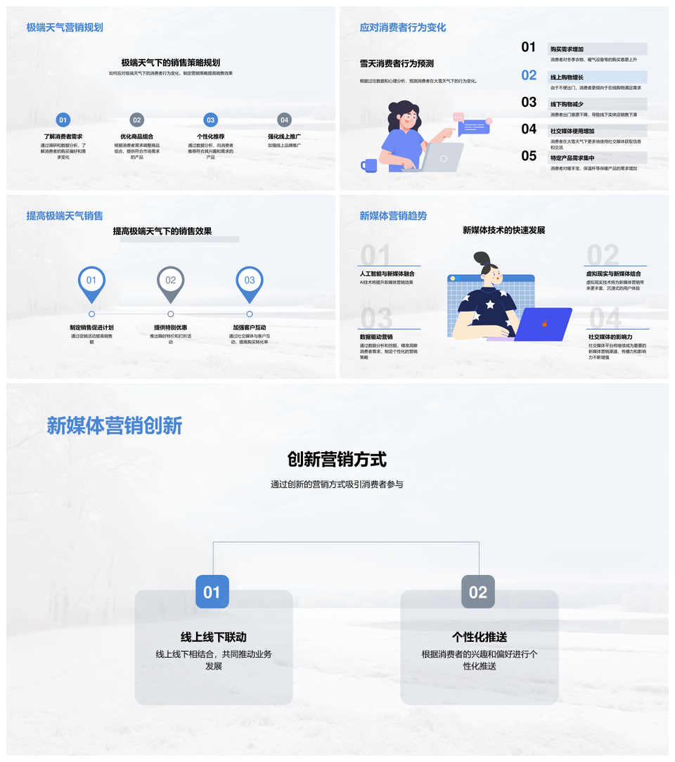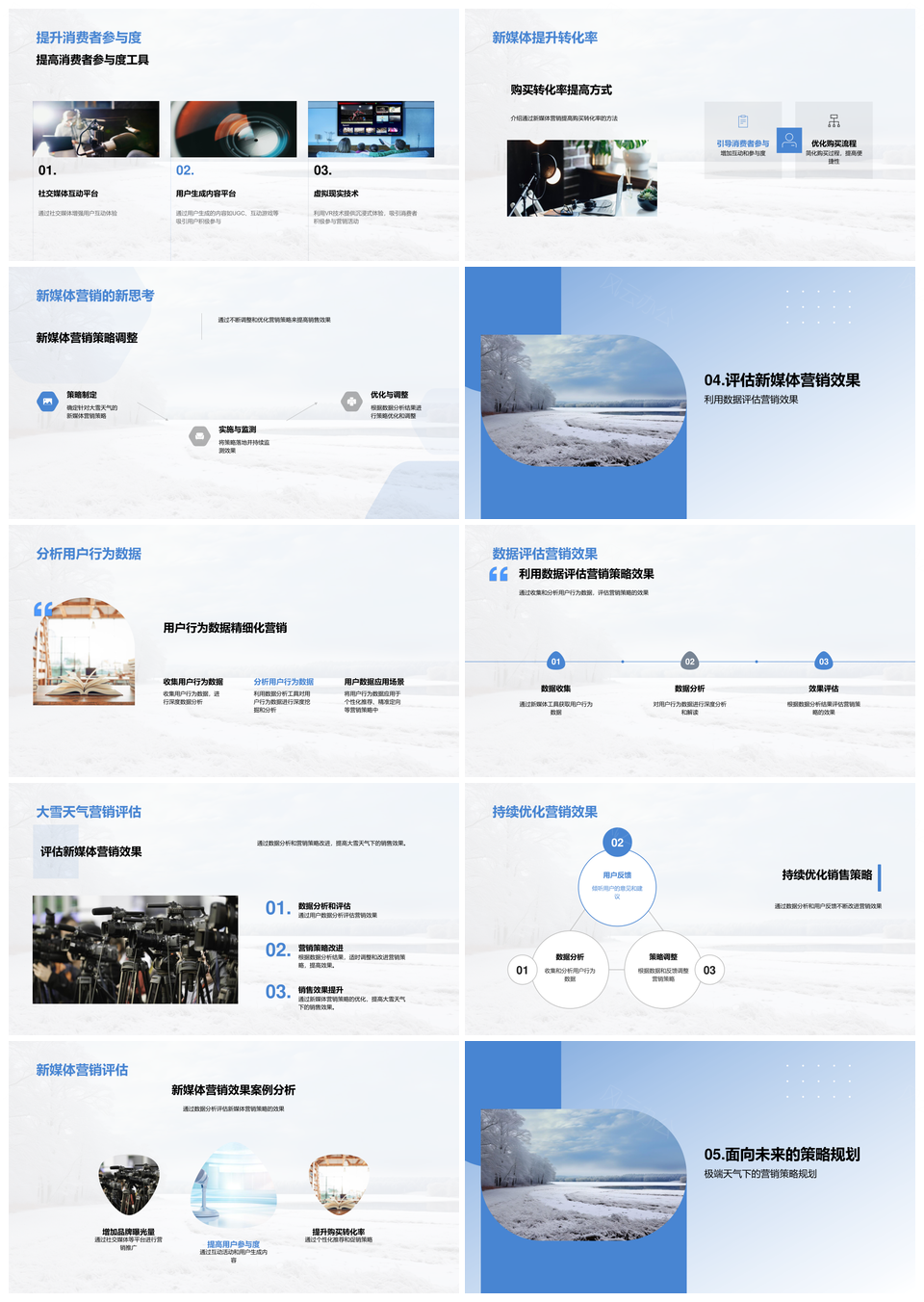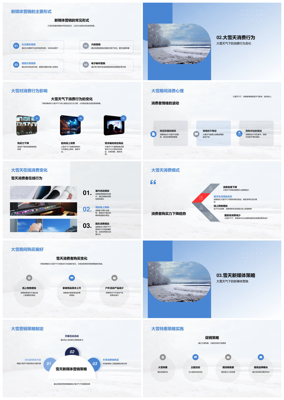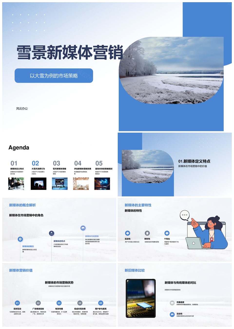 风云办公提供的雪景新媒体营销策略消费行为数据分析PPT模板,下载格式为pptx,一共33页,作品中文字及图均可以修改和编辑,图片更改请在作品中右键图片并更换,文字修改请直接点击文字进行修改。