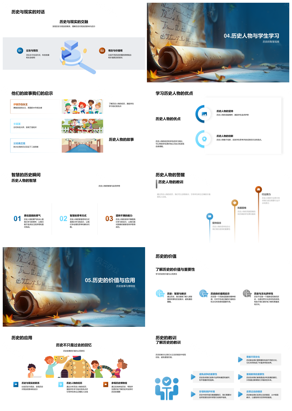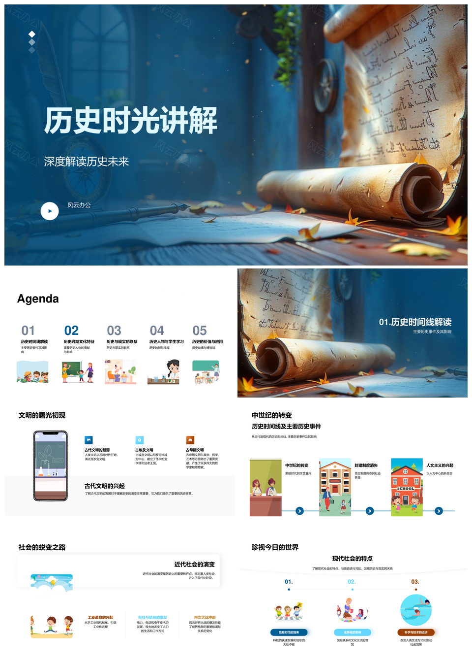 风云办公提供的历史时光跨古今人物事件文化教训演进PPT模板,下载格式为pptx,一共29页,作品中文字及图均可以修改和编辑,图片更改请在作品中右键图片并更换,文字修改请直接点击文字进行修改。