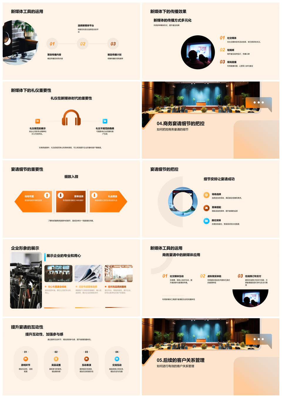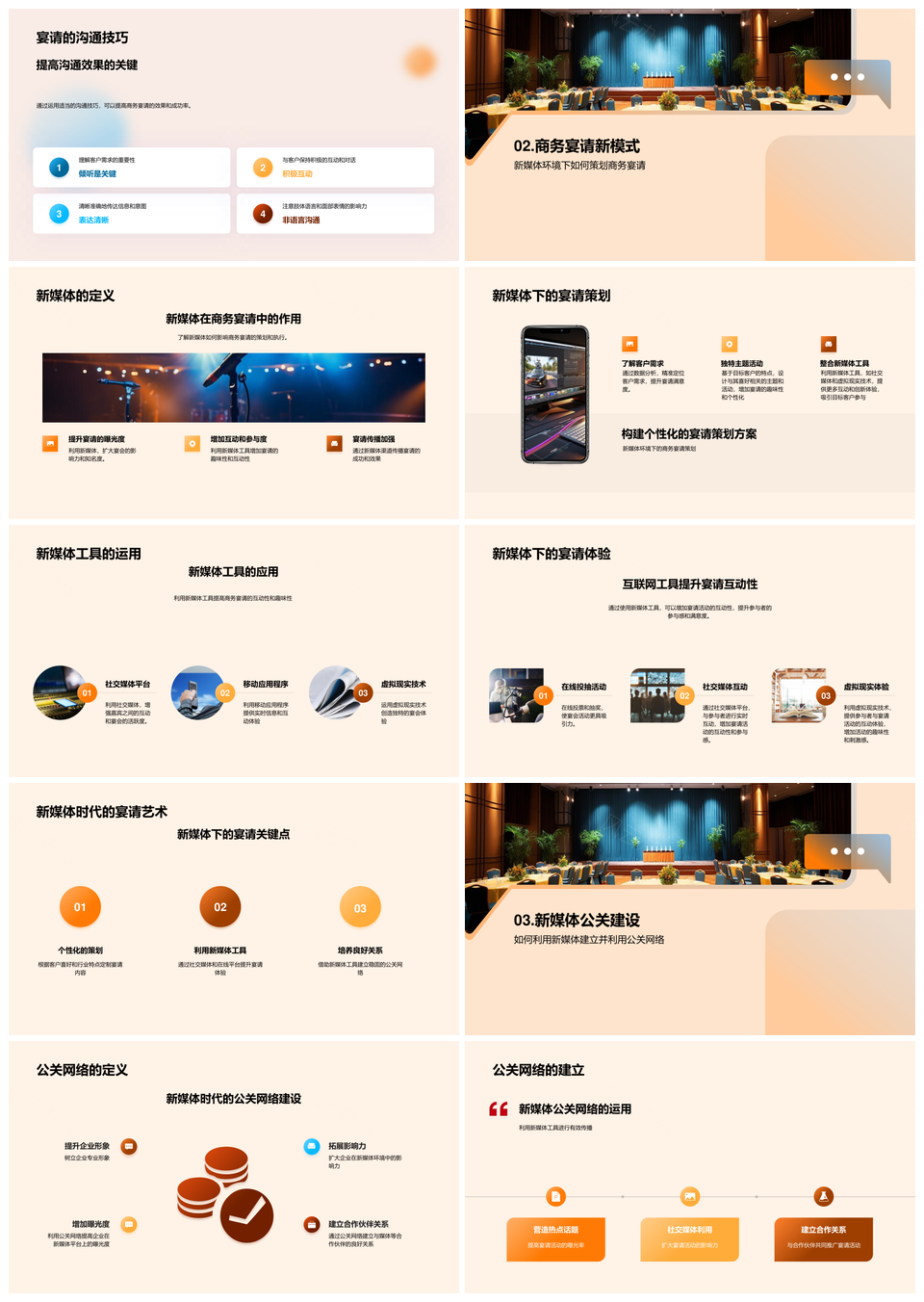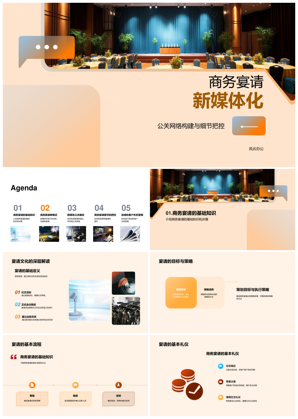 风云办公提供的商务宴请新媒体化公关网络与客户管理PPT模板,下载格式为pptx,一共33页,作品中文字及图均可以修改和编辑,图片更改请在作品中右键图片并更换,文字修改请直接点击文字进行修改。
