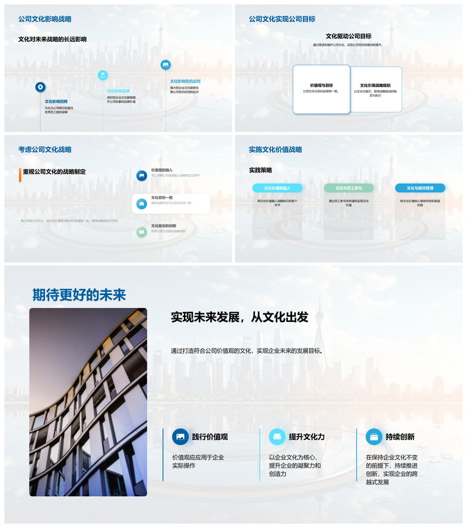风云办公提供的文化引领战略融合核心价值发展PPT模板,下载格式为pptx,一共33页,作品中文字及图均可以修改和编辑,图片更改请在作品中右键图片并更换,文字修改请直接点击文字进行修改。