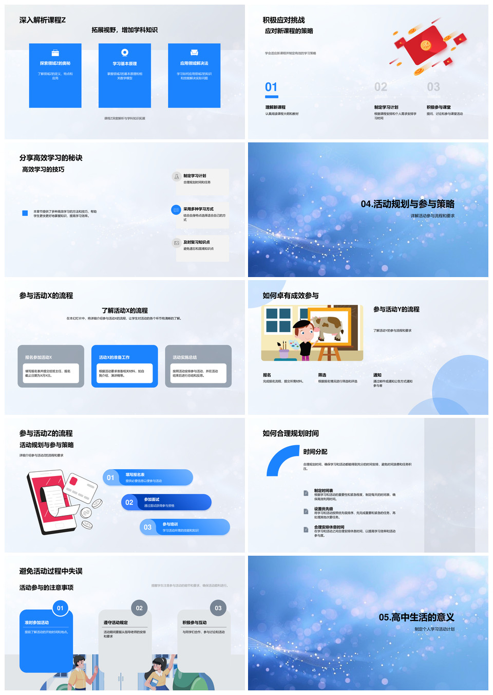 这是一张高一深度学习课程活动高效时间规划指南PPT模板,包含高一、深度学习、课程活动、高效、时间规划、指南等主题内容,也可用作高一深度学习课程活动、深度学习课程活动高效、课程活动高效时间规划、活动高效时间规划指南、高一深度学习课程、深度学习课程活动、课程活动高效、活动高效时间规划、高效时间规划指南、高一深度学习、深度学习课程、课程活动、活动高效、高效时间规划、时间规划指南等PPT场景使用。 风云办公提供的高一深度学习课程活动高效时间规划指南PPT模板,下载格式为pptx,一共33页,作品中文字及图均可以修改和编辑,图片更改请在作品中右键图片并更换,文字修改请直接点击文字进行修改。