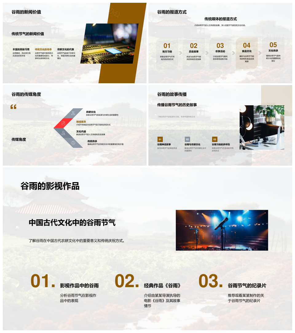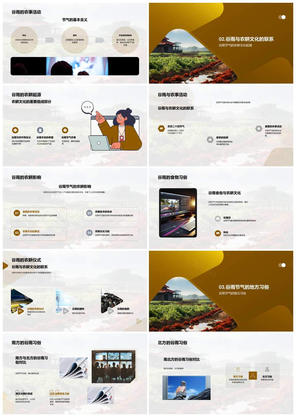这是一张谷雨农耕文化二十四节气人文传统PPT模板,包含谷雨、农耕文化、二十四节气、人文传统等主题内容,也可用作谷雨农耕文化二十四节气、农耕文化二十四节气人文、文化二十四节气人文传统、农耕文化人文传统、谷雨农耕文化、农耕文化人文、文化二十四节气、二十四节气人文、人文传统、农耕文化二十四节气、二十四节气人文传统、谷雨农耕、农耕文化、文化二十四节气、二十四节气人文等PPT场景使用。