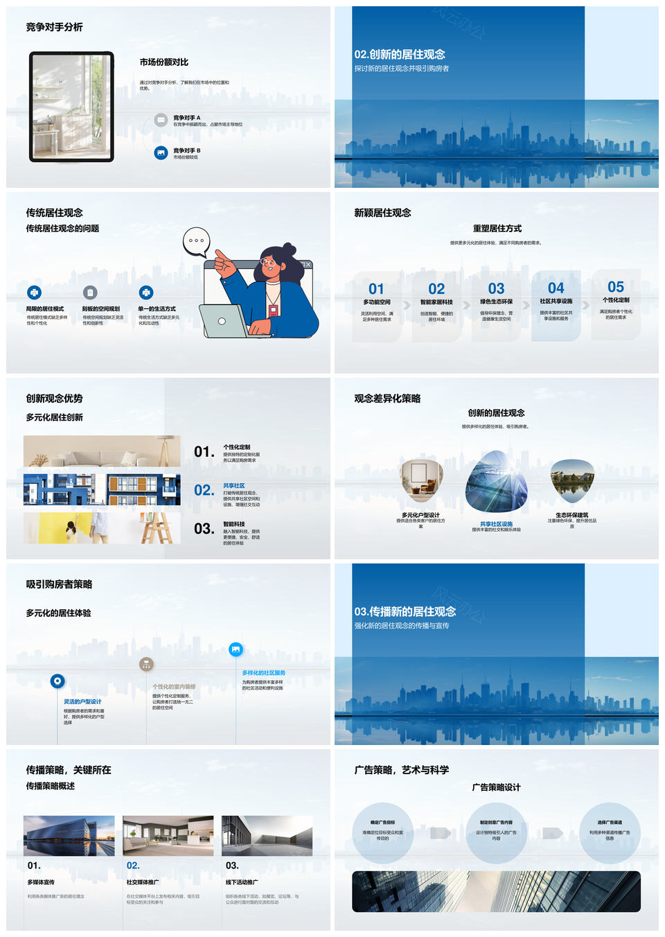 这是一张重塑居住观念创新营销抢占房地产市场份额PPT模板,包含重塑、居住观念、创新、营销、抢占、房地产市场份额等主题内容,也可用作重塑居住观念创新营销、抢占房地产市场份额、房地产市场份额抢占、重塑居住观念创新、居住观念创新营销、创新营销抢占市场、抢占房地产市场、房地产市场份额、重塑居住观念、观念创新营销、营销抢占房地产、房地产市场抢占、房地产市场创新、市场份额抢占、抢占市场创新等PPT场景使用。 风云办公提供的重塑居住观念创新营销抢占房地产市场份额PPT模板,下载格式为pptx,一共33页,作品中文字及图均可以修改和编辑,图片更改请在作品中右键图片并更换,文字修改请直接点击文字进行修改。