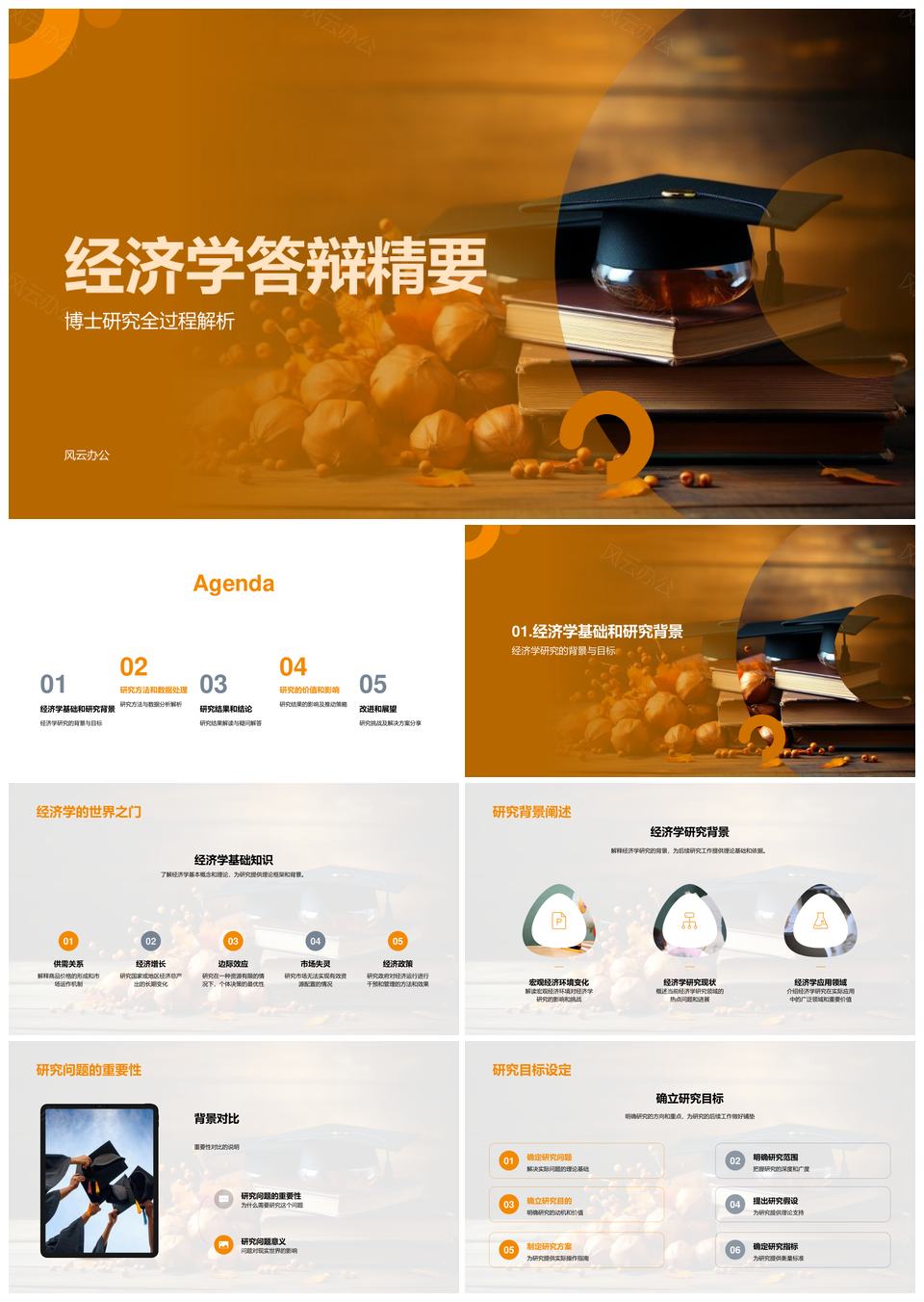 风云办公提供的经济学博士答辩研究目标方法结果攻略PPT模板,下载格式为pptx,一共33页,作品中文字及图均可以修改和编辑,图片更改请在作品中右键图片并更换,文字修改请直接点击文字进行修改。