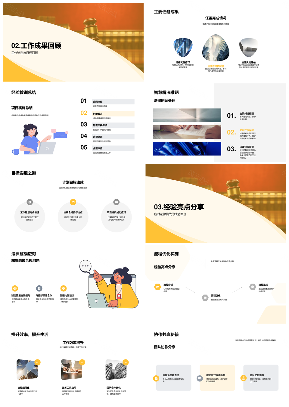 法务部效能展望职责成果经验挑战法规优化未来规划PPT模板推荐
