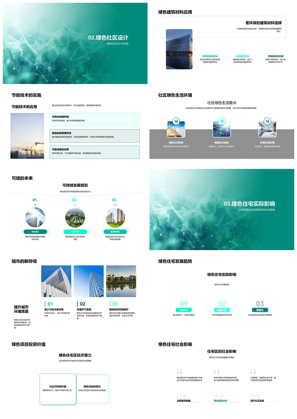 绿建筑投资计划推动可持续绿色设计节能环保社区建材PPT模板推荐