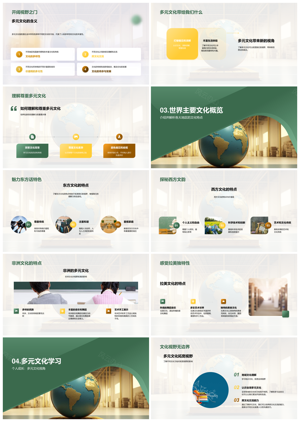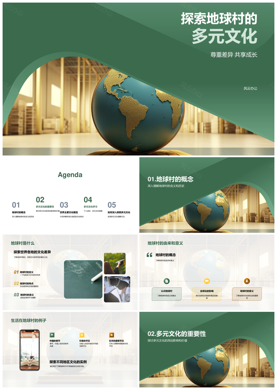 风云办公提供的地球村东西非拉多元文化共融成长PPT模板,下载格式为pptx,一共24页,作品中文字及图均可以修改和编辑,图片更改请在作品中右键图片并更换,文字修改请直接点击文字进行修改。