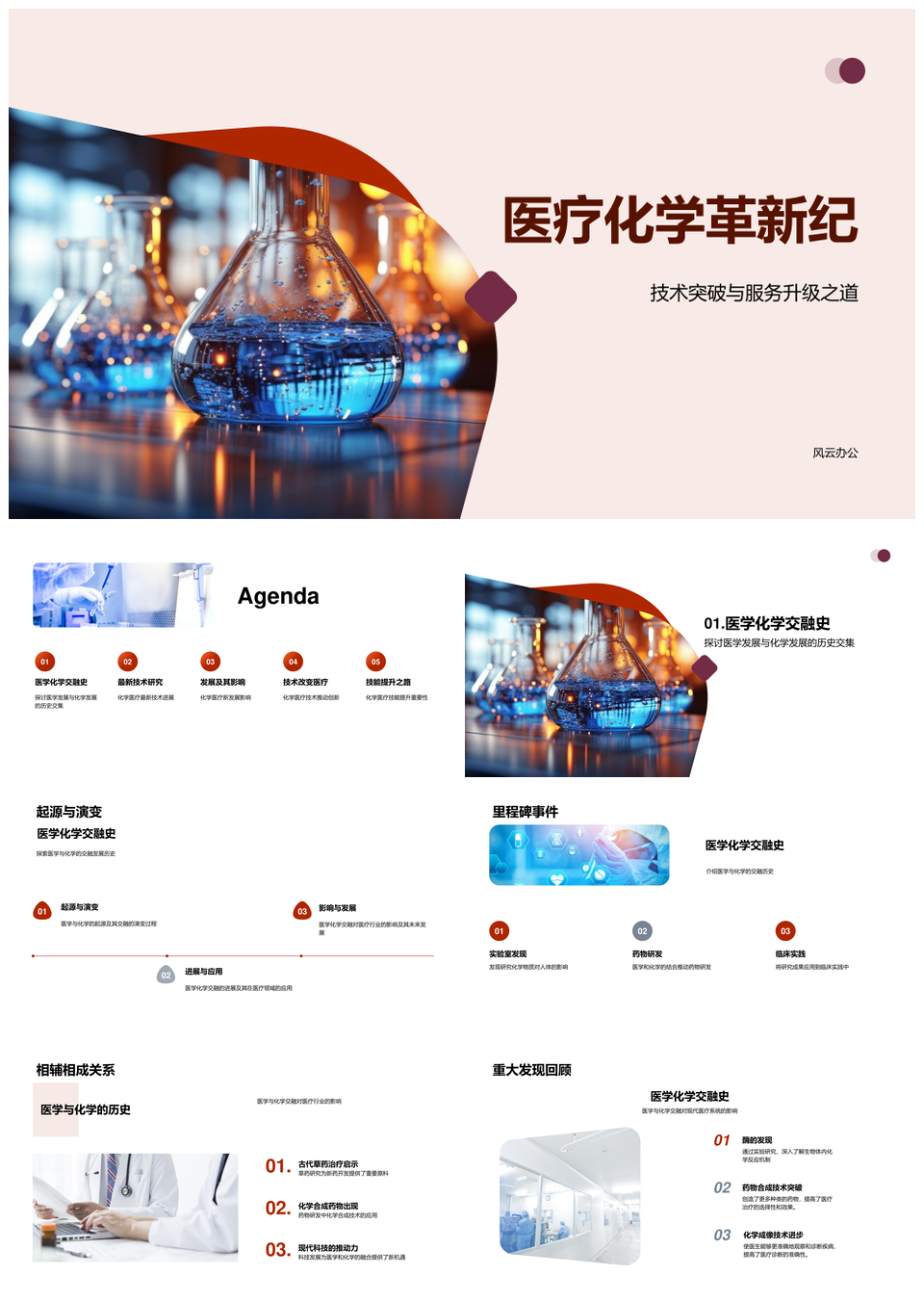 风云办公提供的医疗化学技术突破服务革新升级PPT模板,下载格式为pptx,一共33页,作品中文字及图均可以修改和编辑,图片更改请在作品中右键图片并更换,文字修改请直接点击文字进行修改。