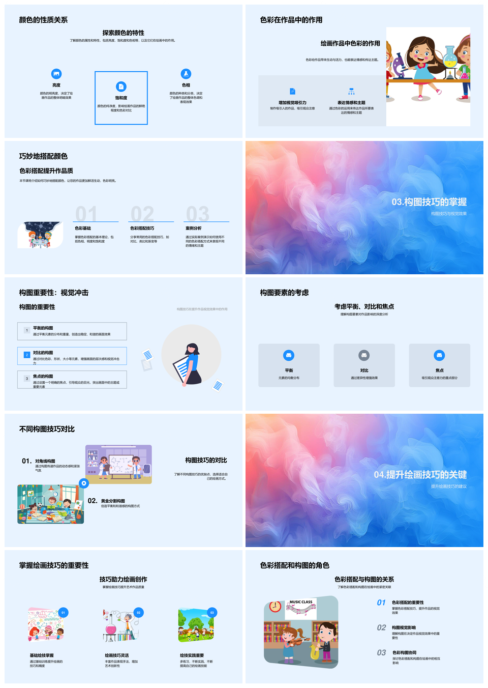 这是一张绘画基础色彩构图笔触技法解析PPT模板,包含绘画、基础、色彩、构图、笔触、技法、解析等主题内容,也可用作绘画基础色彩构图、基础色彩构图笔触、色彩构图笔触技法、构图笔触技法解析、绘画基础构图技法、基础色彩技法解析、绘画色彩笔触解析、基础构图笔触技法、绘画技法解析基础、色彩笔触技法基础、绘画色彩构图笔触、基础构图技法解析、绘画基础色彩技法、色彩技法解析构图、基础色彩笔触解析等PPT场景使用。