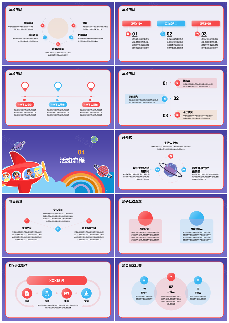 2025紫红蓝插画六一儿童节活动策划PPT模板推荐