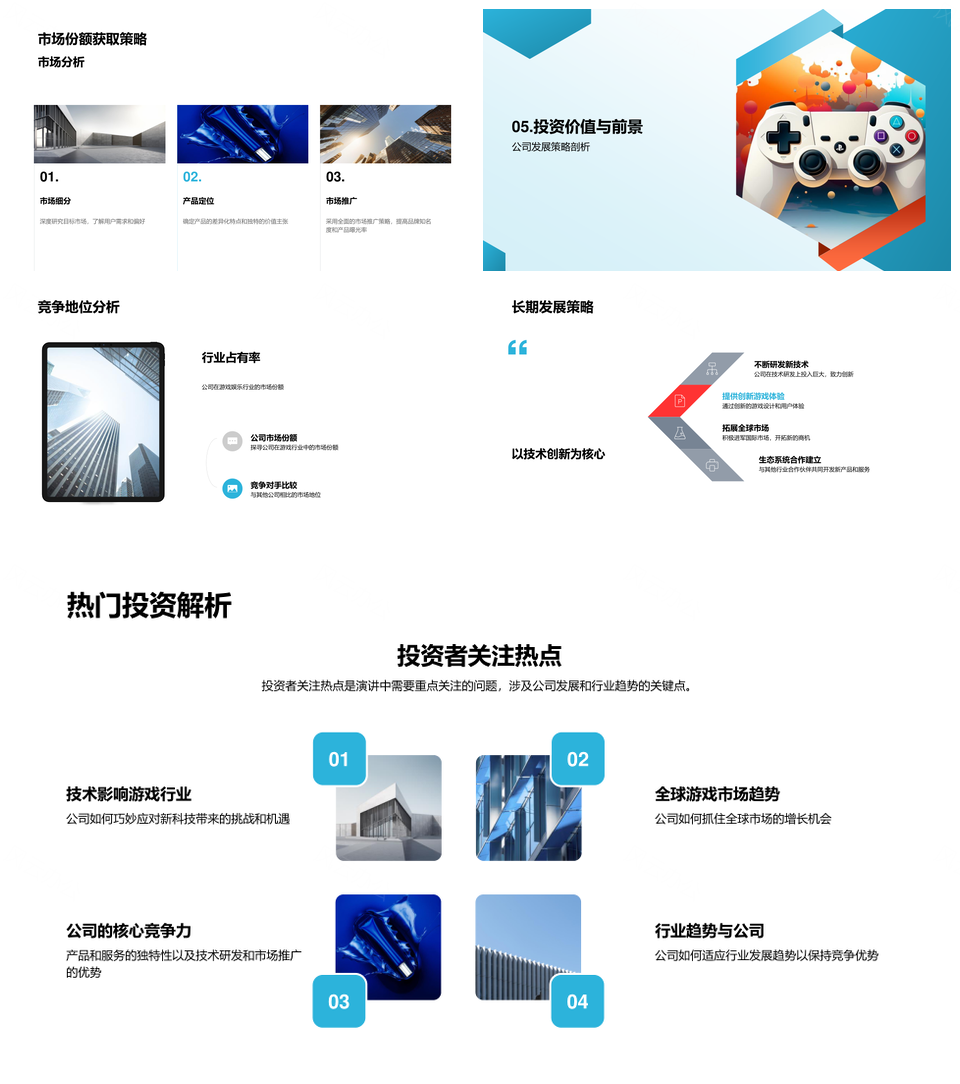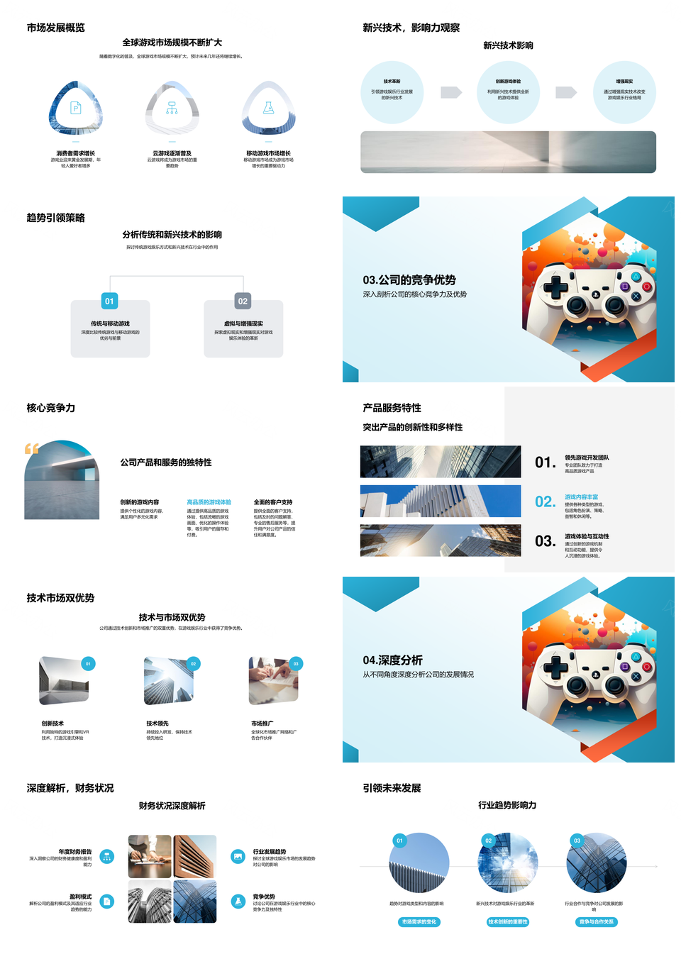 这是一张游戏娱乐行业公司财务市场潜力竞争力解析PPT模板,包含游戏、娱乐、行业、公司、财务、市场、潜力、竞争力、解析等主题内容,也可用作游戏娱乐行业公司财务市场、游戏娱乐行业公司财务、游戏娱乐行业公司、游戏娱乐行业、行业公司财务市场潜力、公司财务市场潜力竞争力、财务市场潜力竞争力解析、市场潜力竞争力解析、公司财务市场潜力、财务市场潜力竞争力、市场潜力竞争力、行业公司财务、公司财务市场、财务市场潜力、竞争力解析等PPT场景使用。 风云办公提供的游戏娱乐行业公司财务市场潜力竞争力解析PPT模板,下载格式为pptx,一共23页,作品中文字及图均可以修改和编辑,图片更改请在作品中右键图片并更换,文字修改请直接点击文字进行修改。
