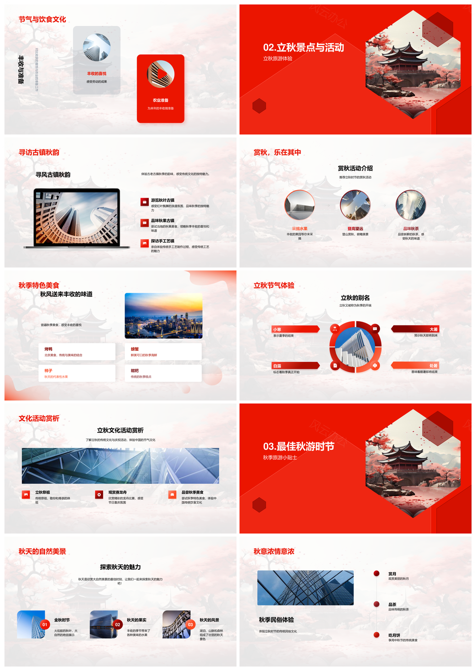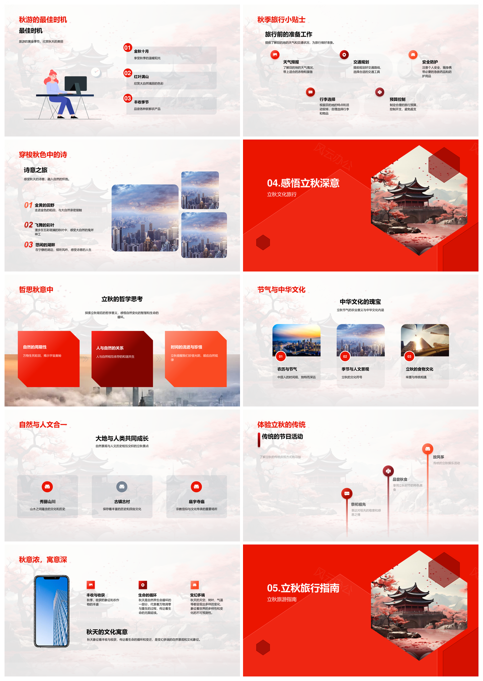 这是一张立秋节气文化游赏枫叶自然风光PPT模板,包含立秋、节气、文化、游赏、枫叶、自然、风光等主题内容,也可用作立秋节气文化游赏、节气文化游赏枫叶、文化游赏枫叶自然、游赏枫叶自然风光、立秋节气文化、节气文化游赏、文化游赏枫叶、游赏枫叶自然、枫叶自然风光、立秋节气、节气文化、文化游赏、游赏枫叶、枫叶自然、自然风光等PPT场景使用。