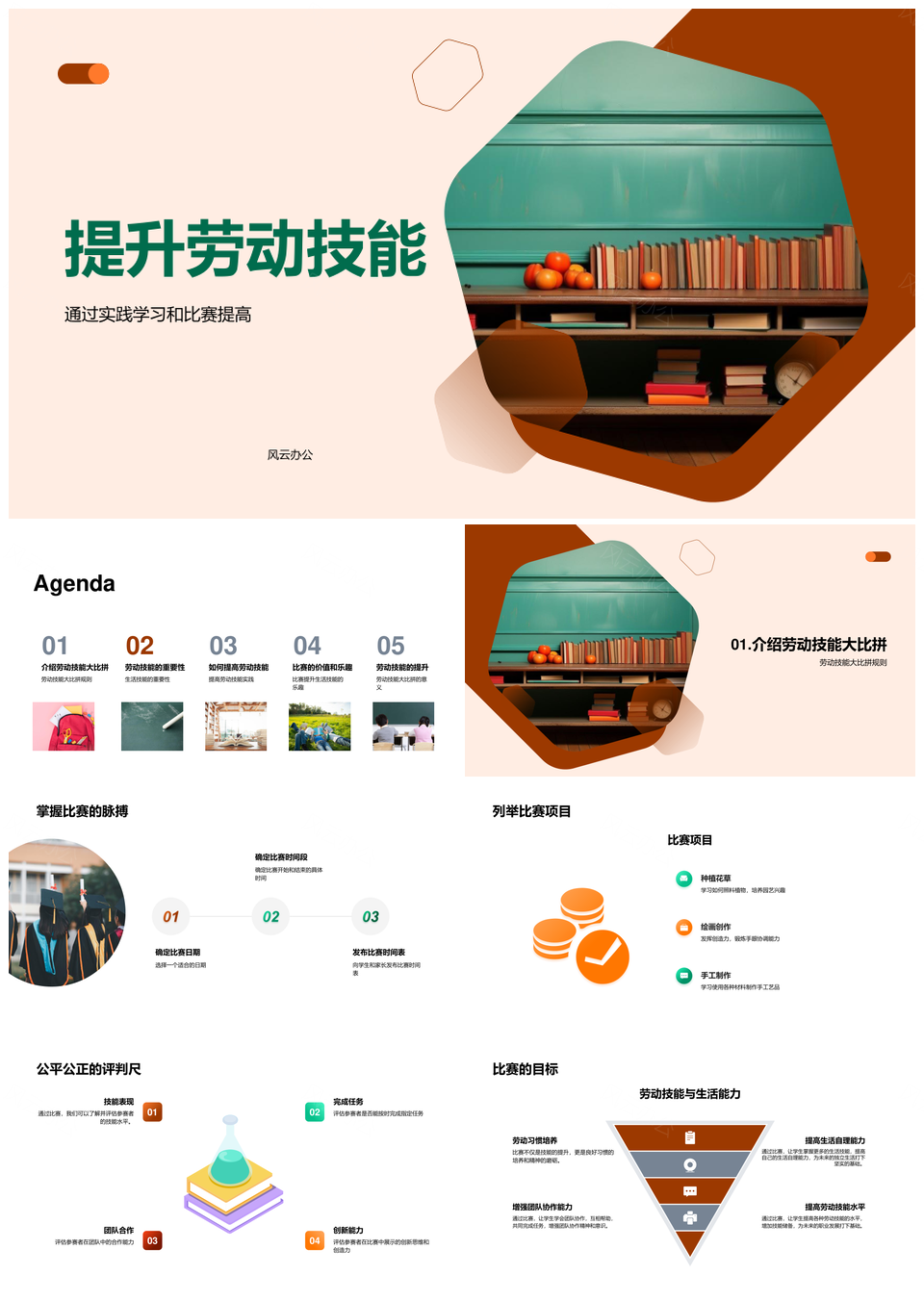 风云办公提供的小学劳动技能大比拼实践提升生活能力PPT模板,下载格式为pptx,一共33页,作品中文字及图均可以修改和编辑,图片更改请在作品中右键图片并更换,文字修改请直接点击文字进行修改。