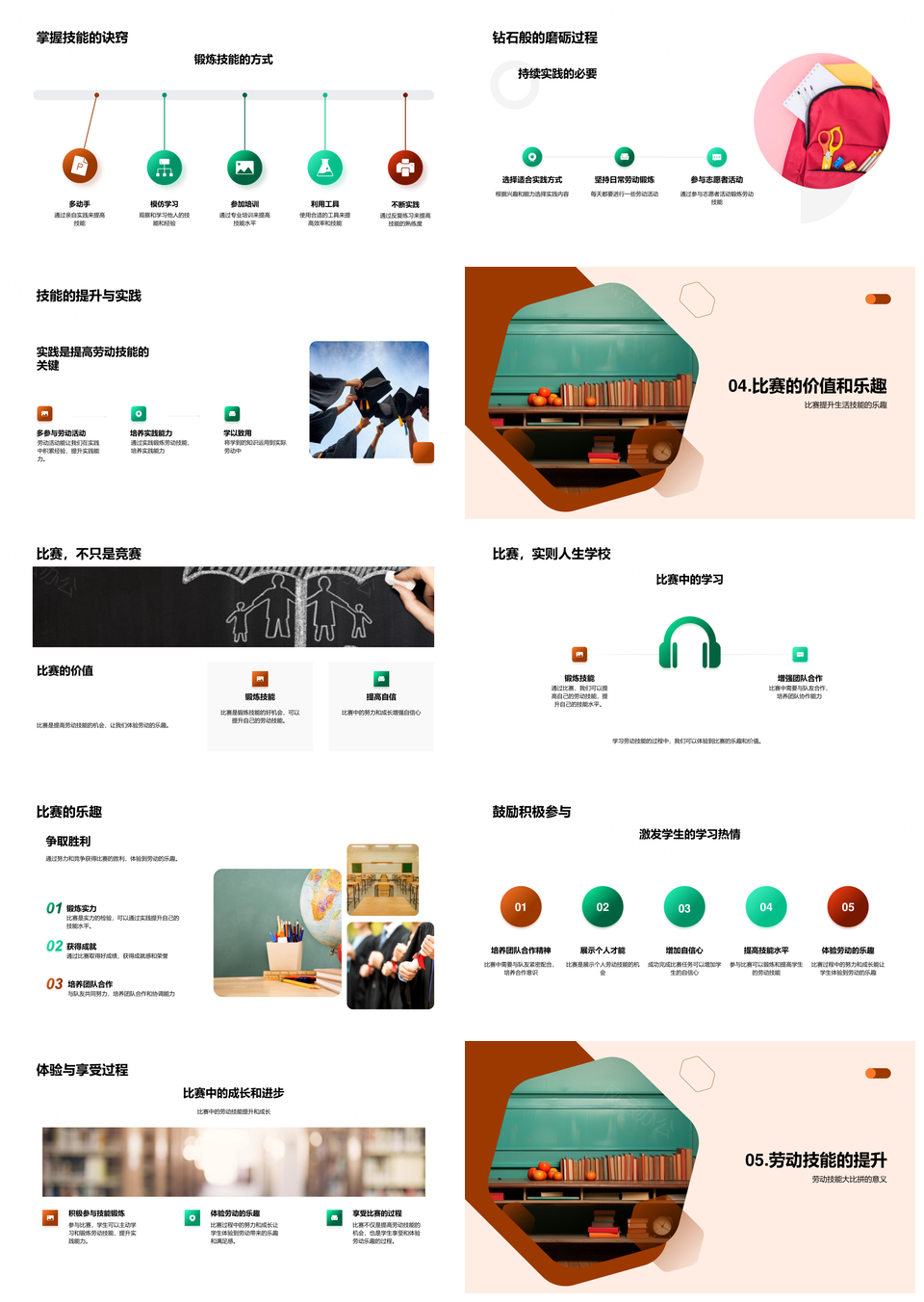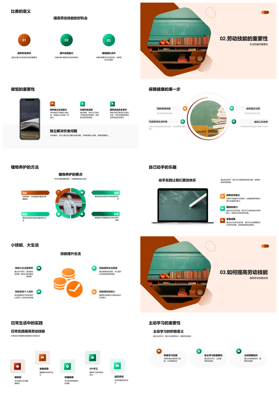 这是一张小学劳动技能大比拼实践提升生活能力PPT模板,包含小学、劳动技能、大比拼、实践、提升、生活能力等主题内容,也可用作小学劳动技能大比拼、劳动技能大比拼实践、技能大比拼实践提升、大比拼实践提升生活、实践提升生活能力、小学劳动技能、劳动技能大比拼、技能大比拼实践、大比拼实践提升、实践提升生活、提升生活能力、小学劳动、劳动技能、技能大比拼、实践提升等PPT场景使用。