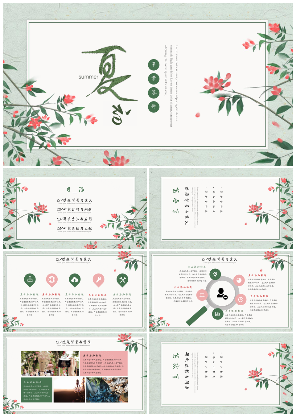这是一张绿色初夏小清新毕业答辩PPT模板,包含绿色、初夏、小清新、毕业、答辩等主题内容,也可用作绿色初夏小清新毕业、初夏小清新毕业答辩、绿色初夏小清新、初夏小清新毕业、小清新毕业答辩、绿色初夏毕业、初夏毕业答辩、绿色初夏、初夏小清新、小清新毕业、毕业答辩、初夏毕业等PPT场景使用。 风云办公提供的绿色初夏小清新毕业答辩PPT模板,下载格式为pptx,一共18页,作品中文字及图均可以修改和编辑,图片更改请在作品中右键图片并更换,文字修改请直接点击文字进行修改。