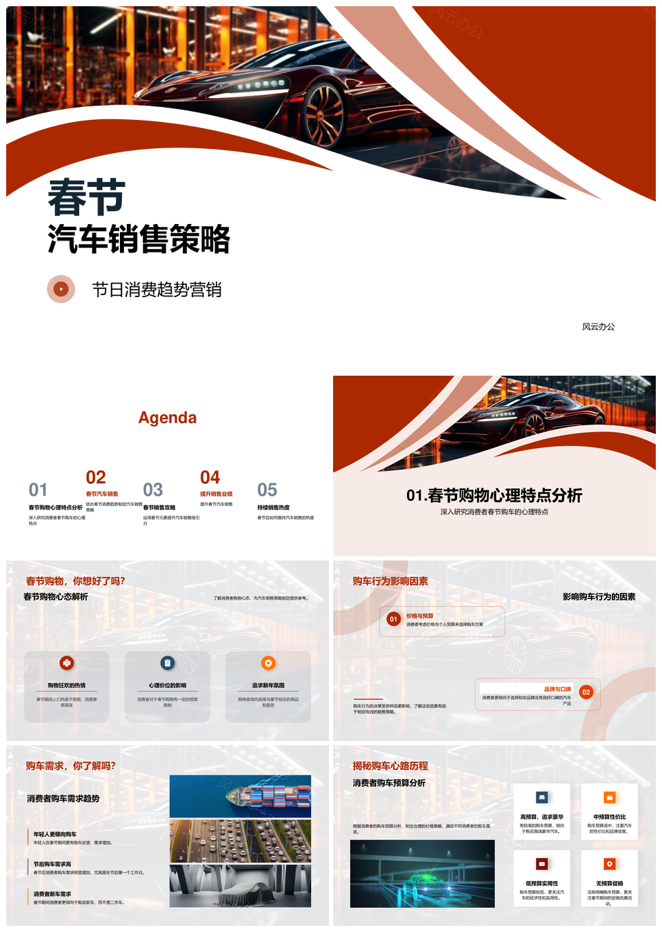 春节汽车销售红灯笼节日消费趋势营销策略PPT模板