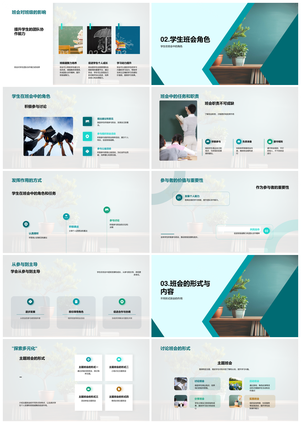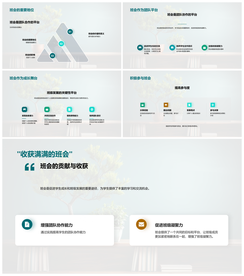 这是一张班会师生成长教育合作平台PPT模板,包含班会、师生、成长、教育、合作、平台等主题内容,也可用作师生成长教育合作、成长教育合作平台、师生成长教育、成长教育合作、教育合作平台、班会师生成长、班会教育合作、师生教育合作、班会师生、师生成长、成长教育、教育合作、合作平台、师生教育、教育平台等PPT场景使用。 风云办公提供的班会师生成长教育合作平台PPT模板,下载格式为pptx,一共33页,作品中文字及图均可以修改和编辑,图片更改请在作品中右键图片并更换,文字修改请直接点击文字进行修改。